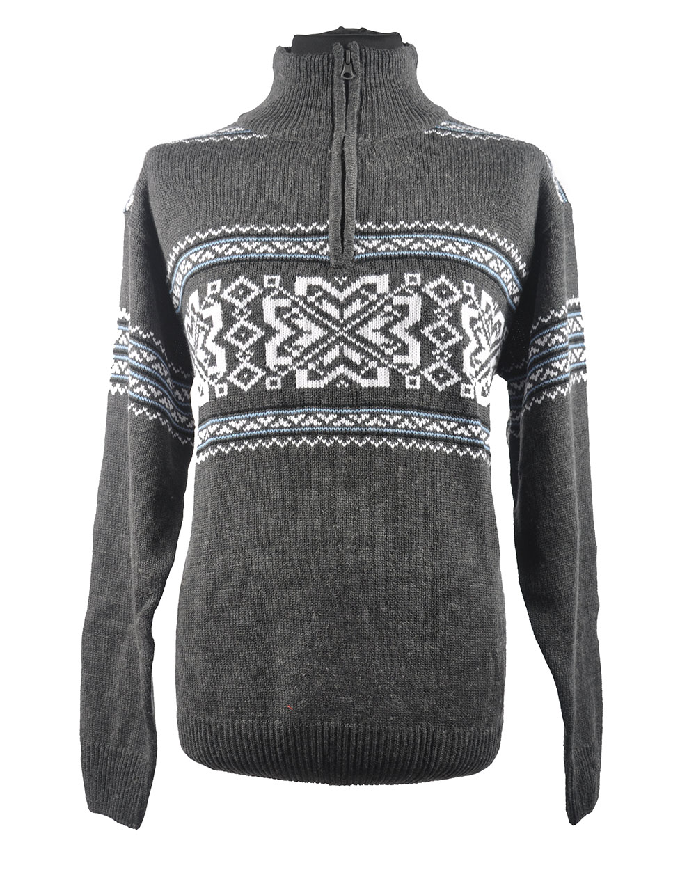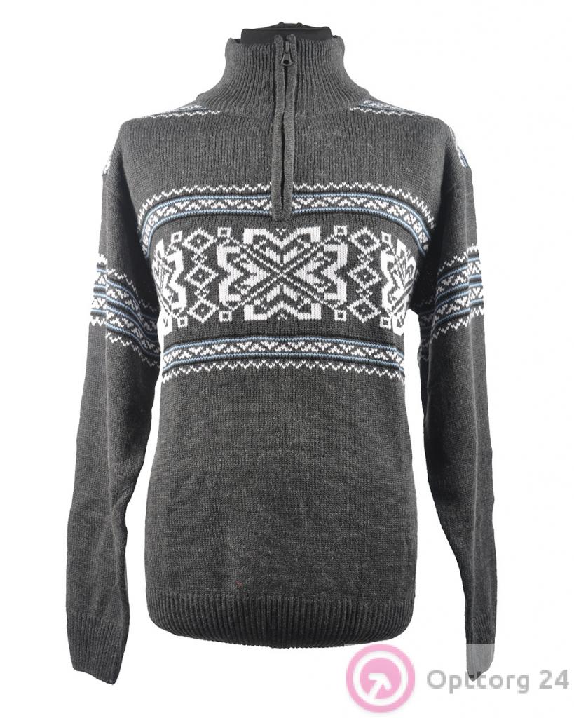 Джемпер мужской с молнией темно-серый со снежинками оптом