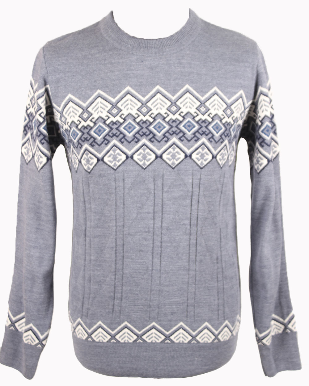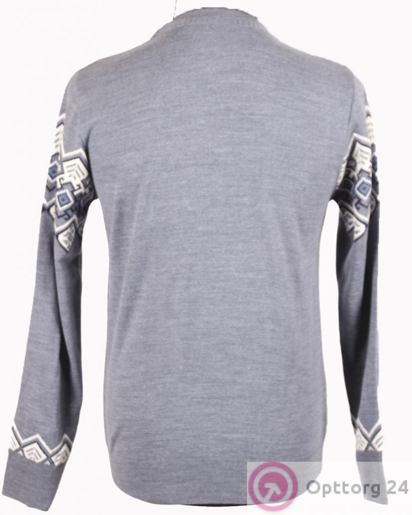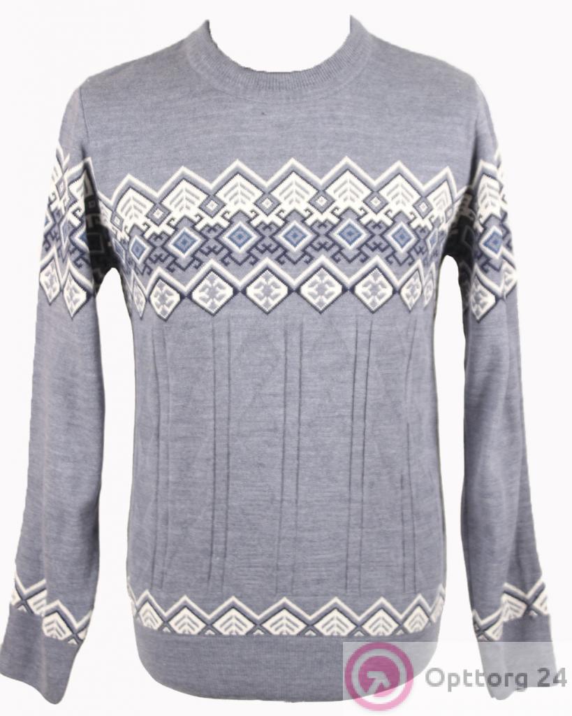Джемпер мужской серого цвета с геометрическим рисунком на груди. оптом