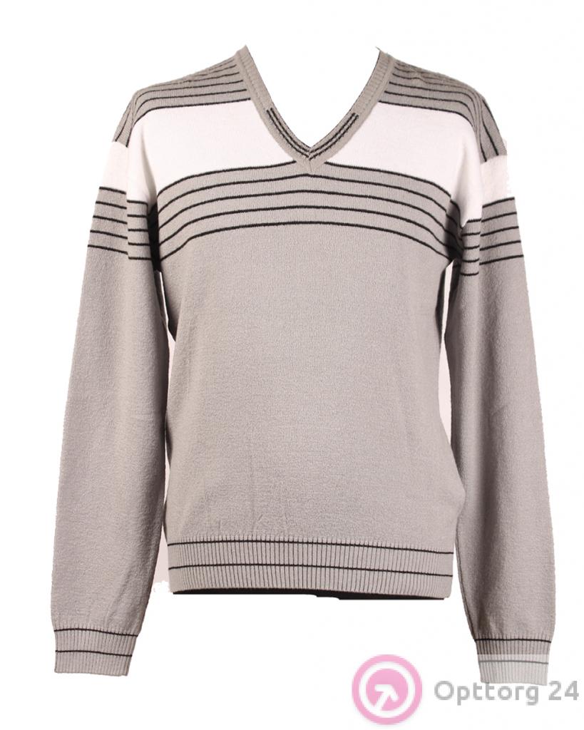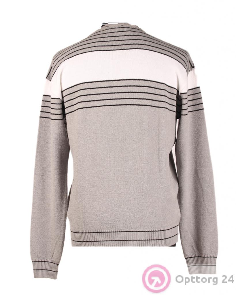 Джемпер мужской серый с белыми и черными полосками шерстяной оптом