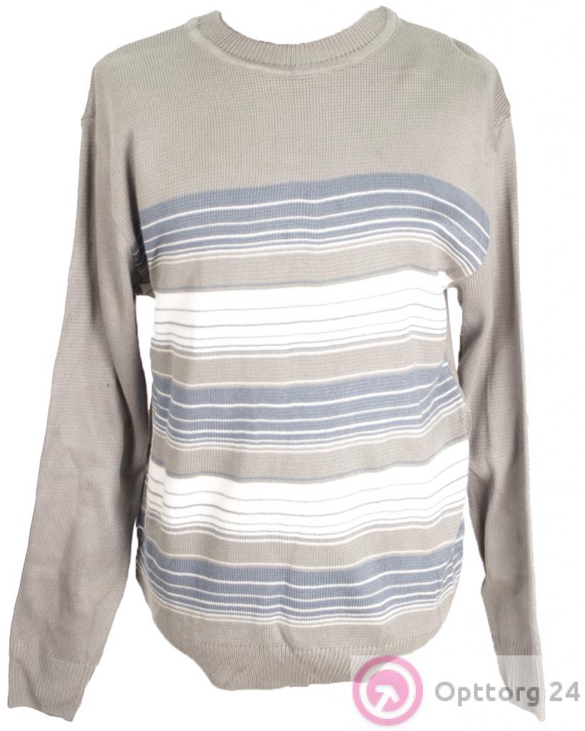 Джемпер мужской серый с синими и белыми полосками оптом