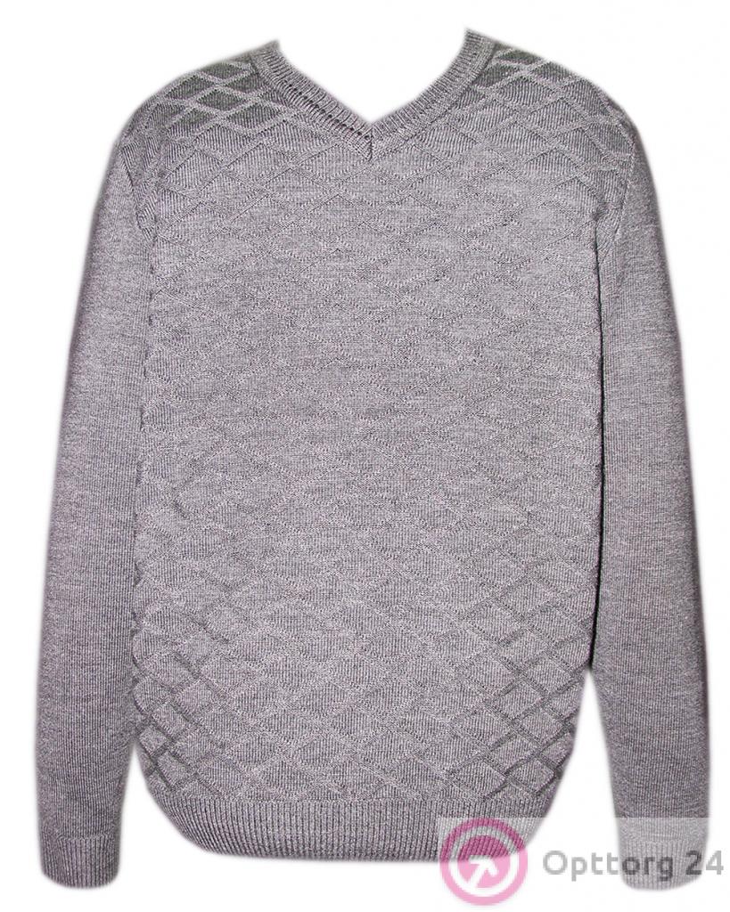 Джемпер мужской серый с узором "Ромб" оптом