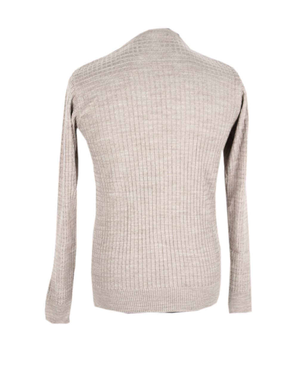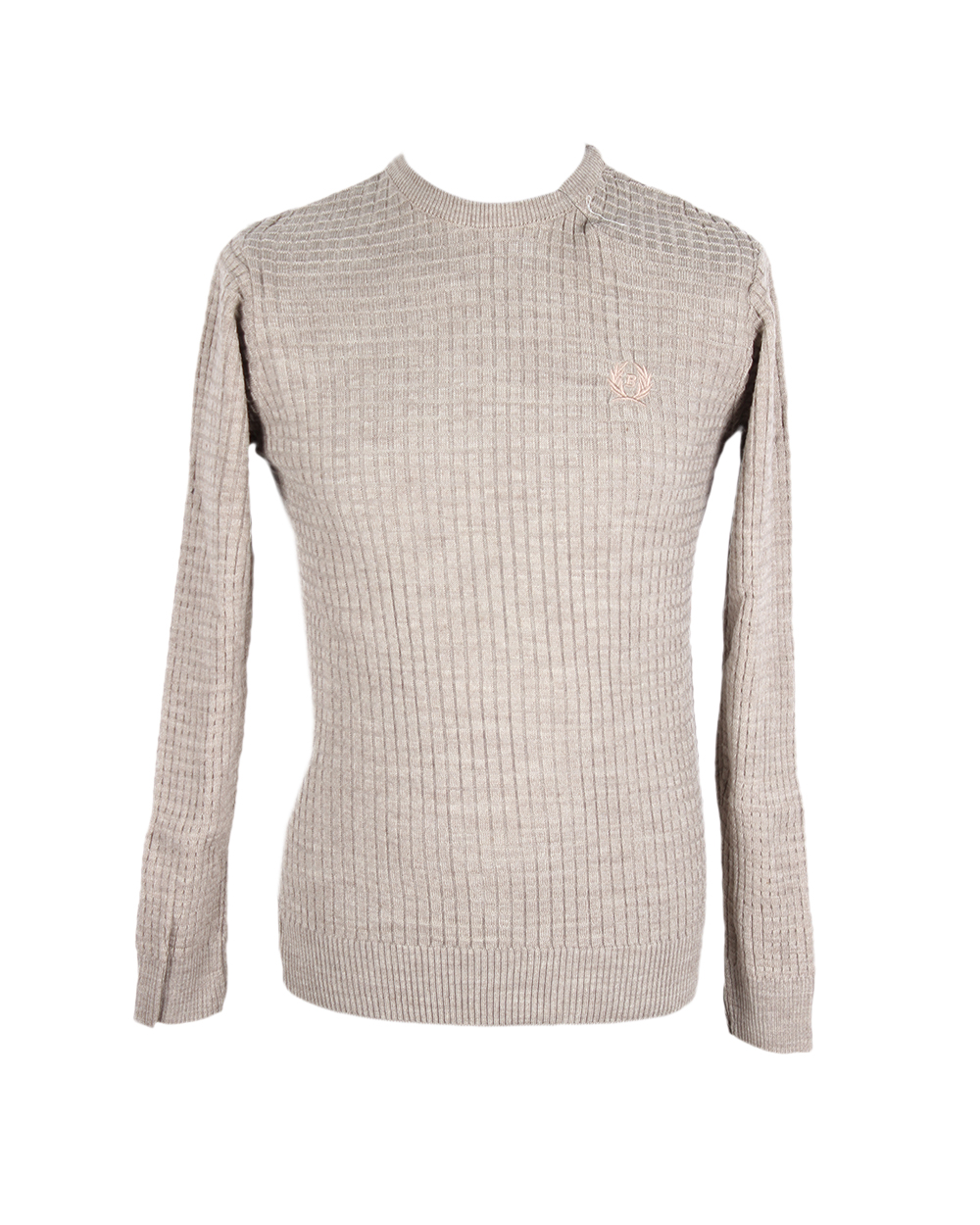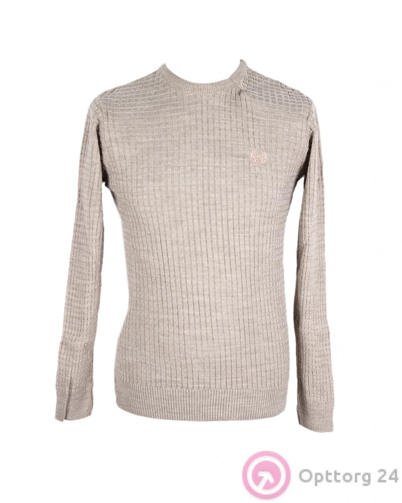 Симпатичный мужской джемпер серого цвета. Модель имееьт приталенный крой, округлую горловину и длинные рукава.