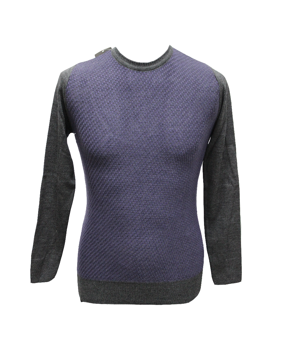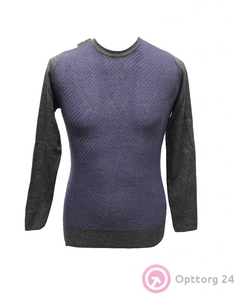 Стильный мужской джемпер с округлой горловиной. Модель выполнена спереди в синем цвете, спина серого цвета.