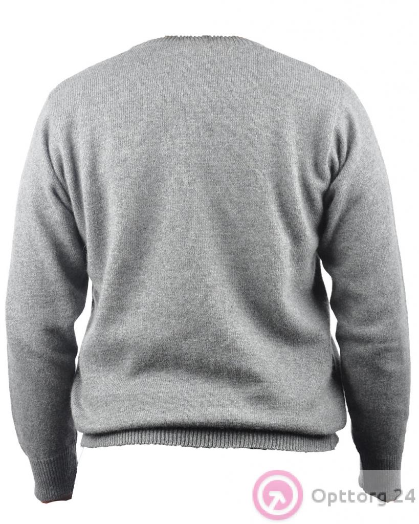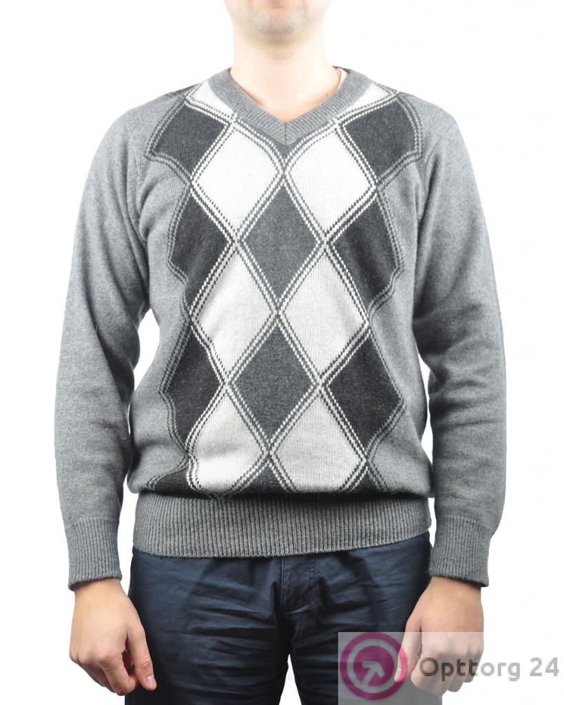 Джемпер мужской светло-серый с V-вырезом в черно-белый ромб оптом