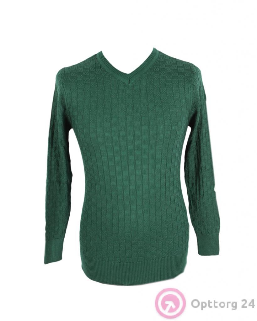Джемпер мужской темно-зеленый с V-образным вырезом оптом