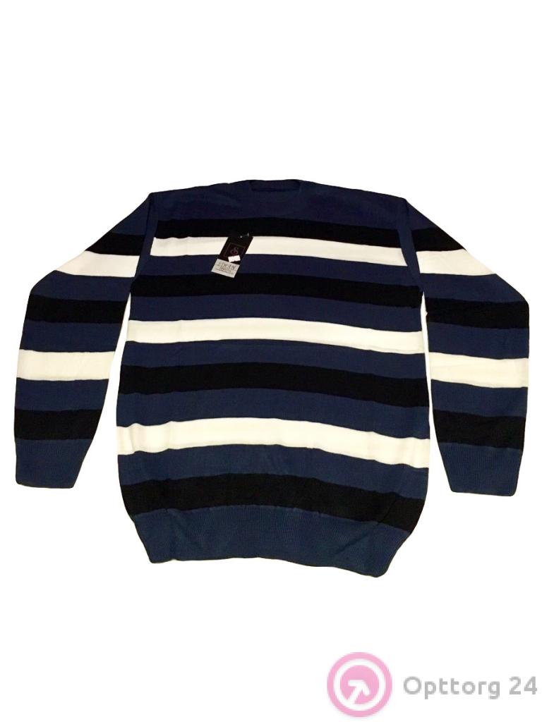 Джемпер мужской в 3-х цветную полоску (синий, чёрный, белый) оптом
