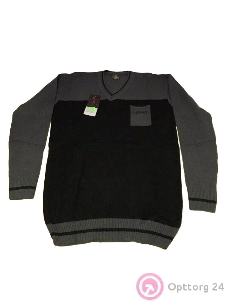 Джемпер мужской в чёрно-серых тонах с V-образной горловиной оптом