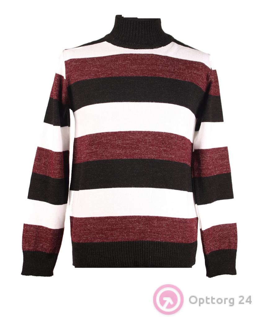 Джемпер мужской в полоску белого, коричневого и черного цвета оптом