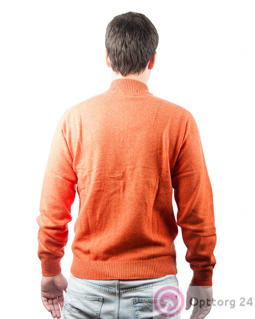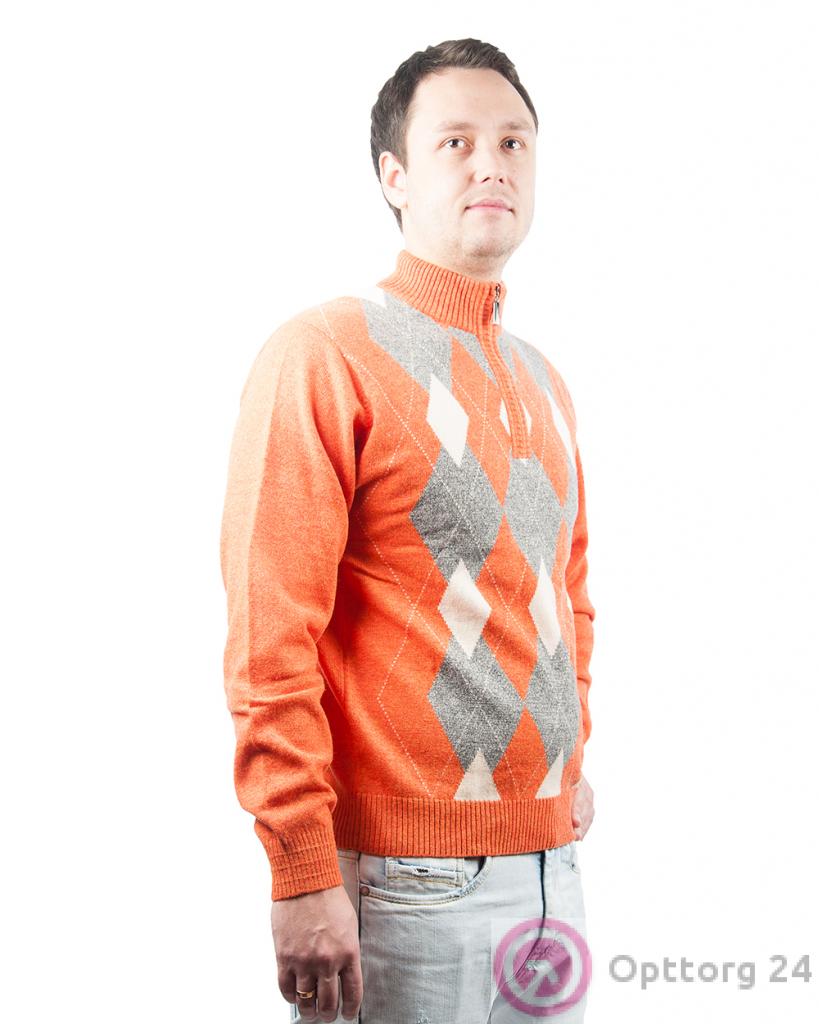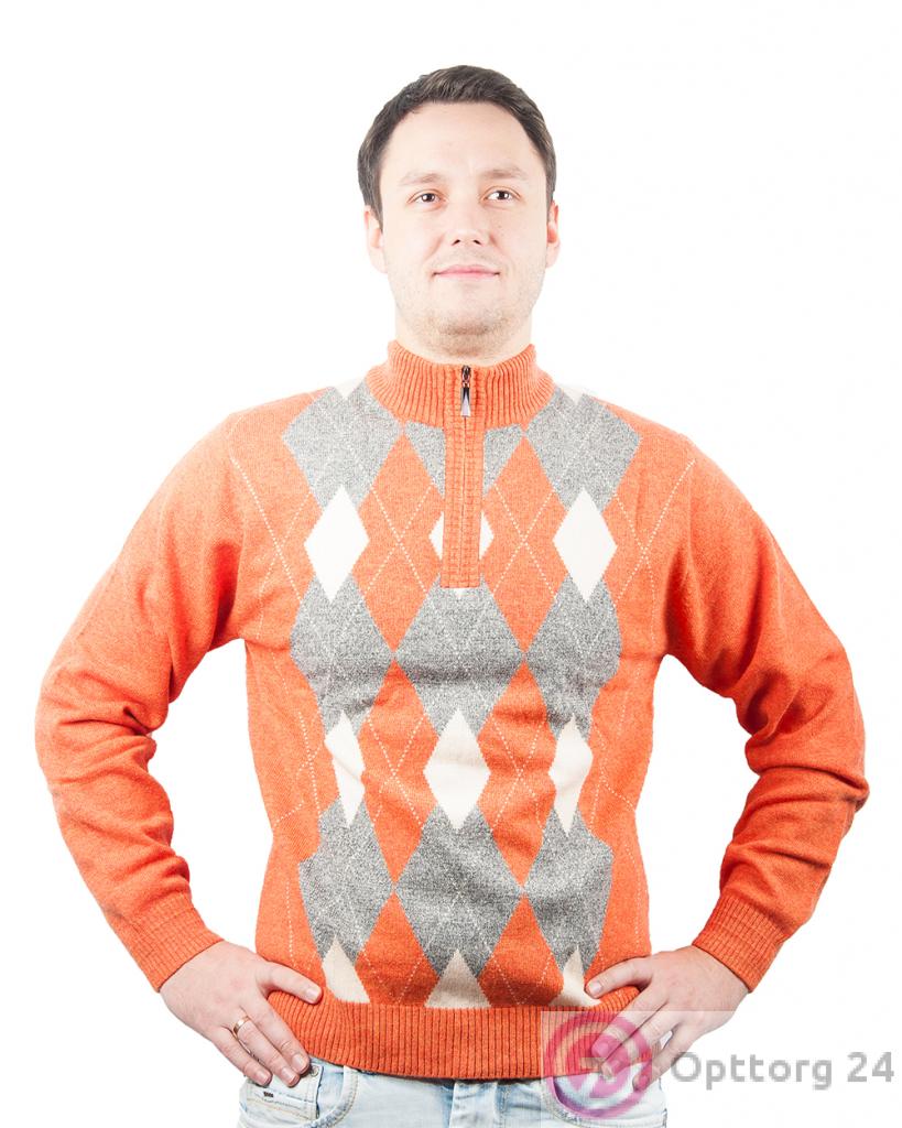 Джемпер мужской вязаный серо-оранжевый в ромбик оптом