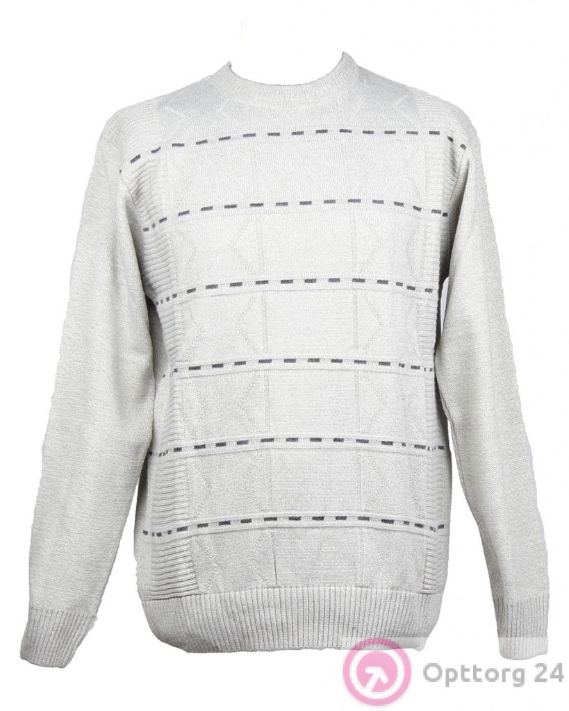 Джемпер мужской вязаный светло-серый с черными полосками оптом