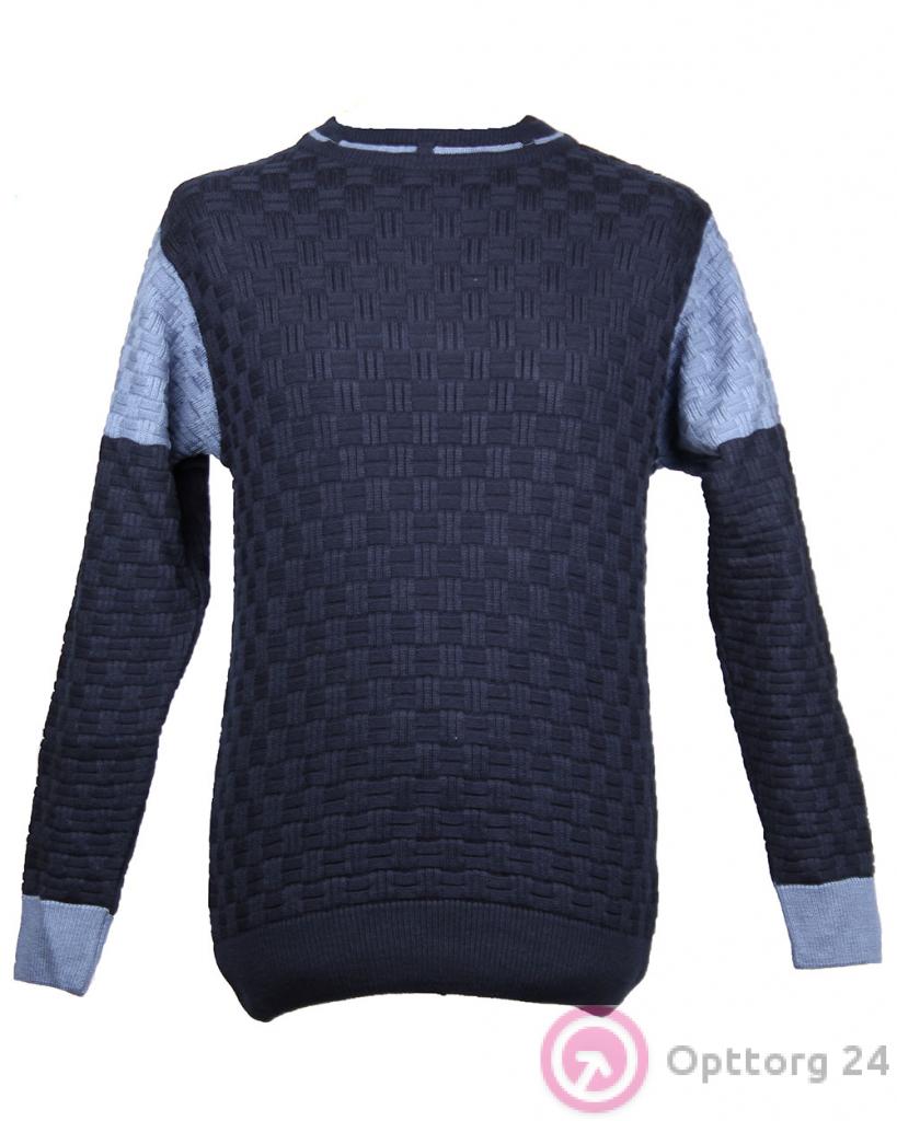 Джемпер мужской вязаный темно-синий с голубыми вставками оптом