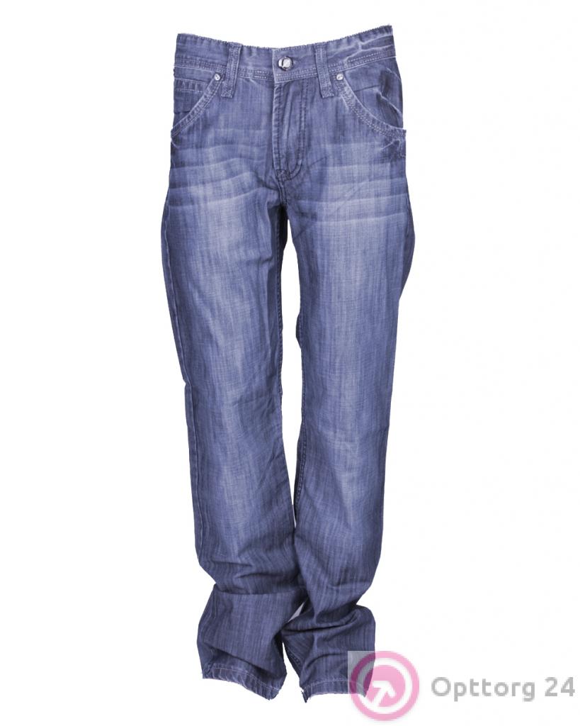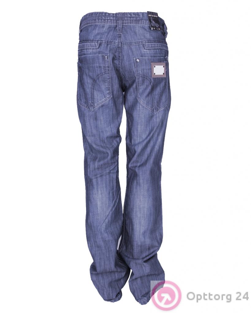 Джинсы мужские голубые со строчкой и потертостями оптом