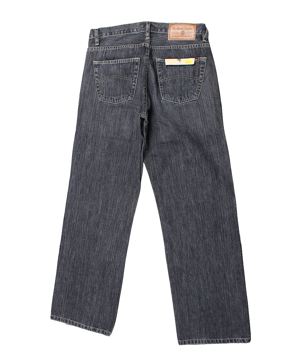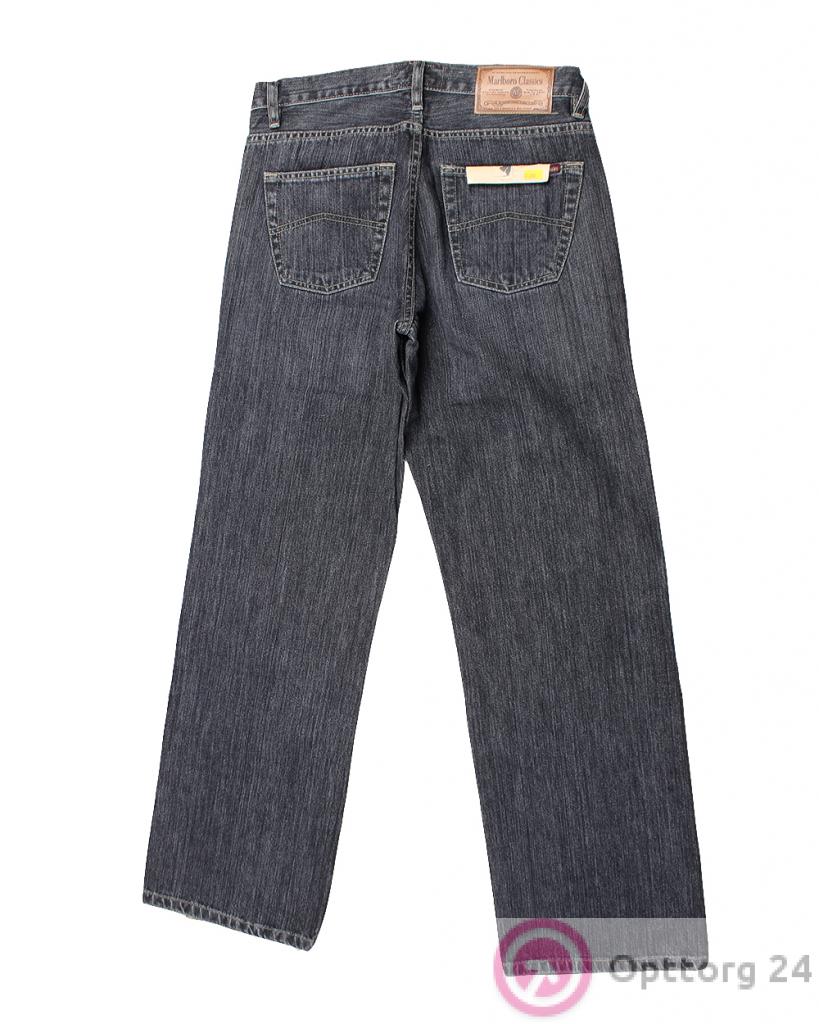 Мужские джинсы с широкими прямымми брючинами. Модель выполнена в темно-сером цвете.