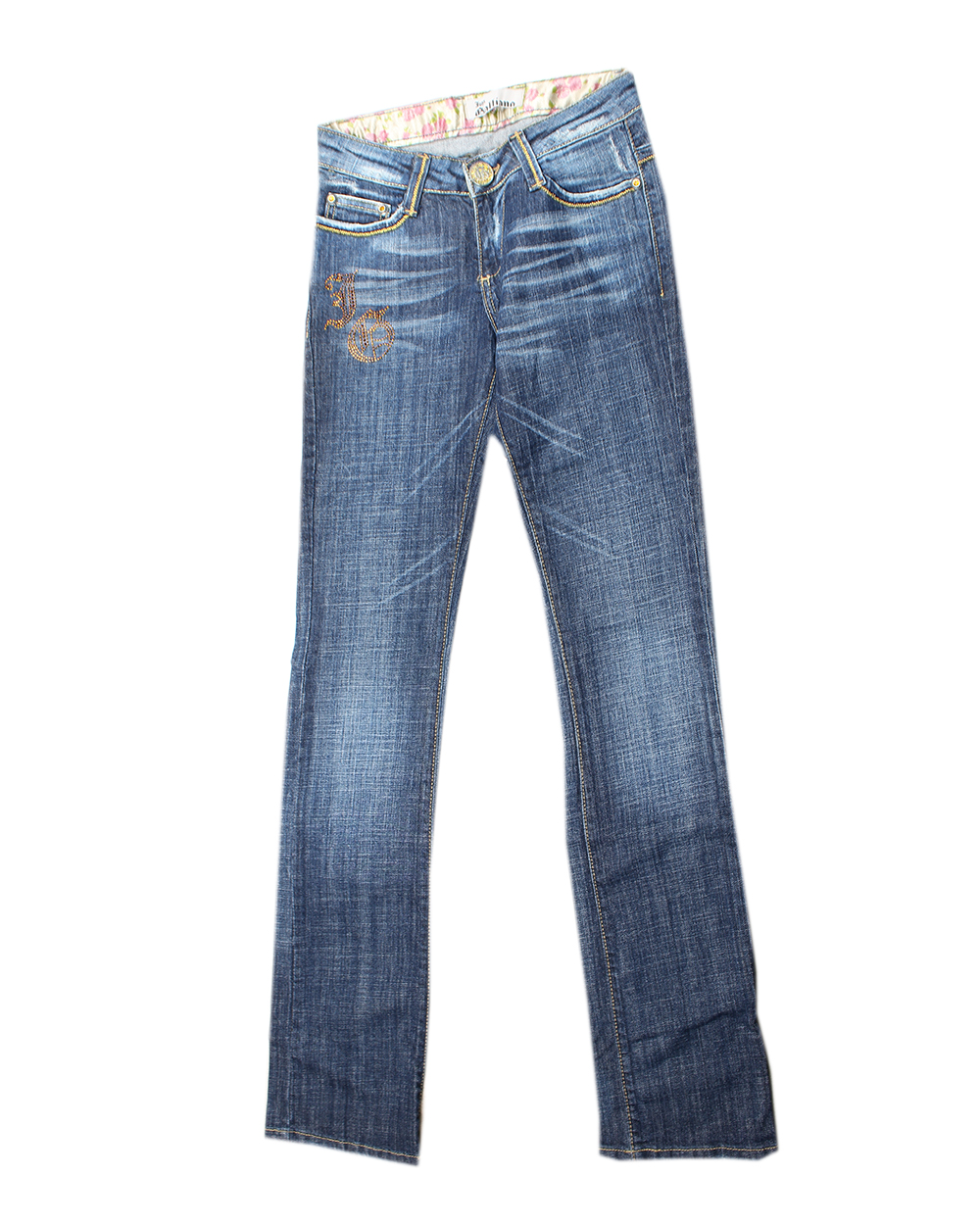 Женские джинсы с высветленными фрагментами. Модель имеет среднюю посадку.