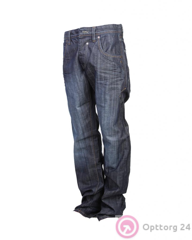 Джинсы мужские синие с эффектом помятости оптом