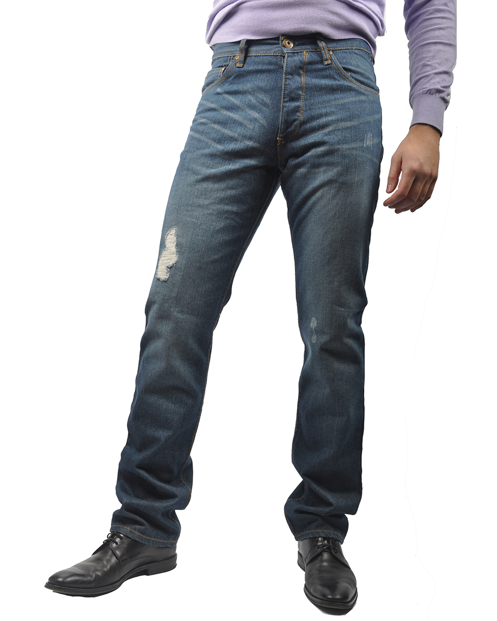 Эта модная модель подойдет мужчинам, которые не боятся эксперементировать. Эффект "потертости" и "стирки" придаст вашему образу легкую развязность и ненавязчивость. Джинсы можно сочетать с ботинками или кроссовками.