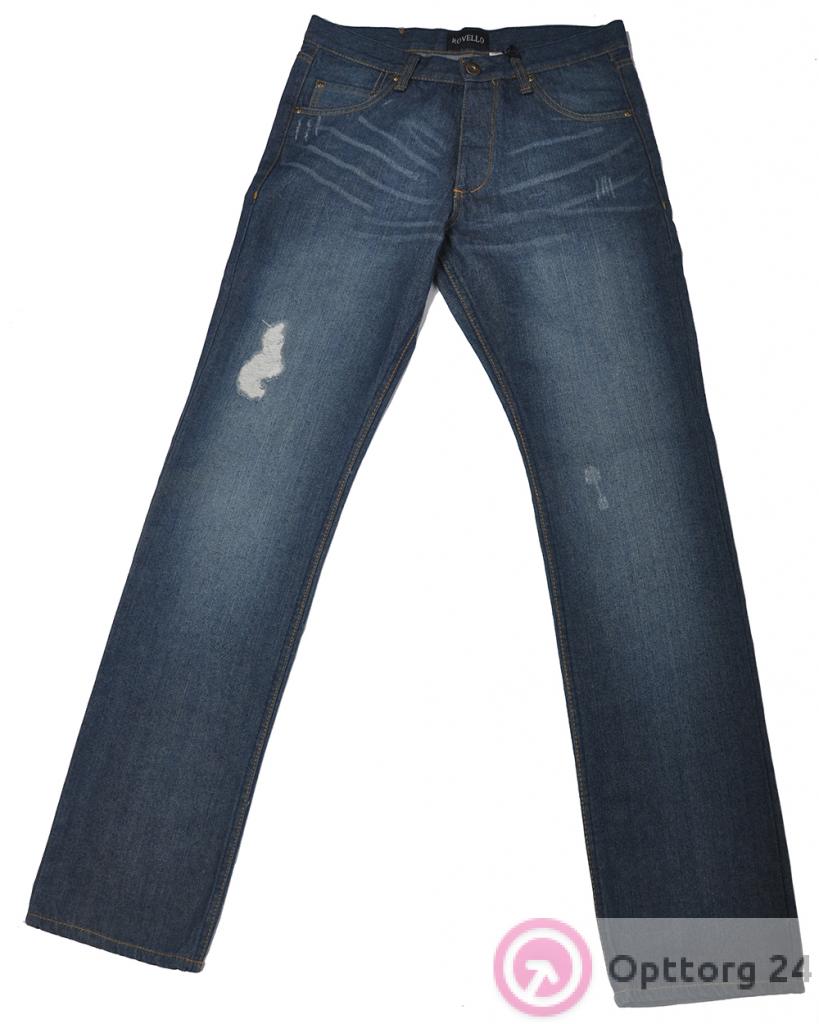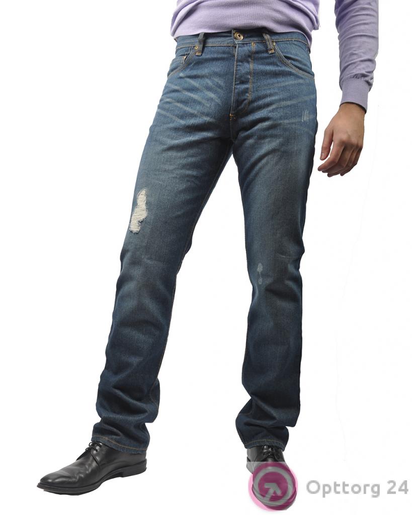 Джинсы мужские синие с потертостями и "стиркой" оптом