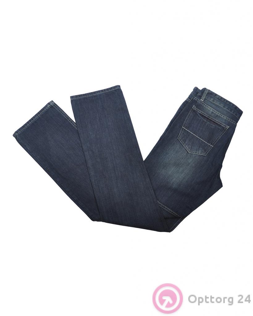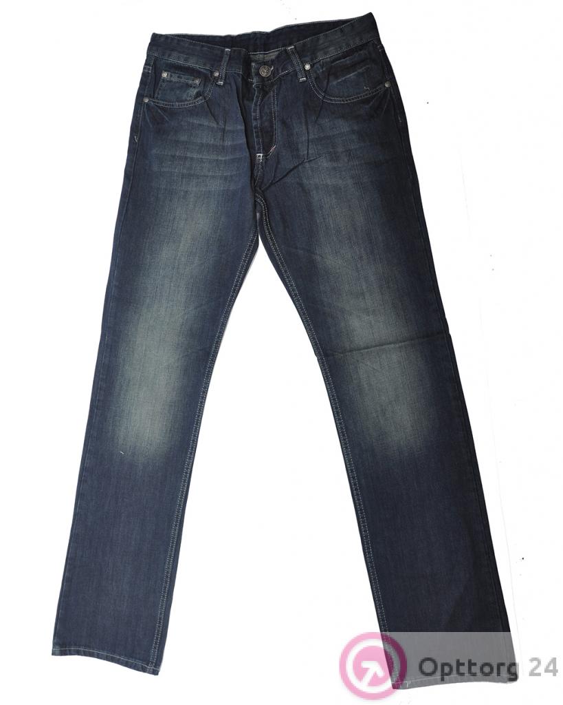 Джинсы мужские темно-синие с потертостями на пуговицах оптом