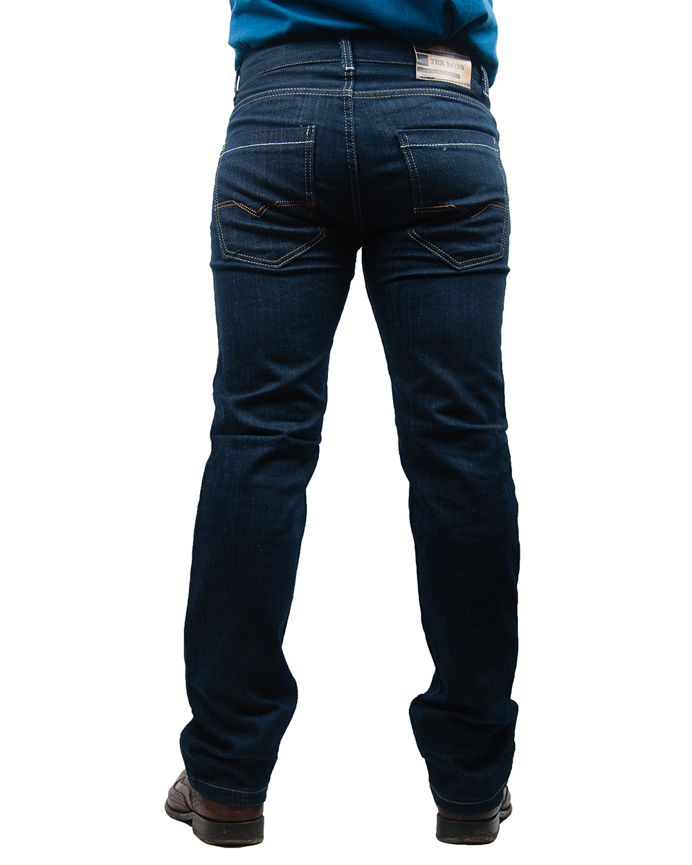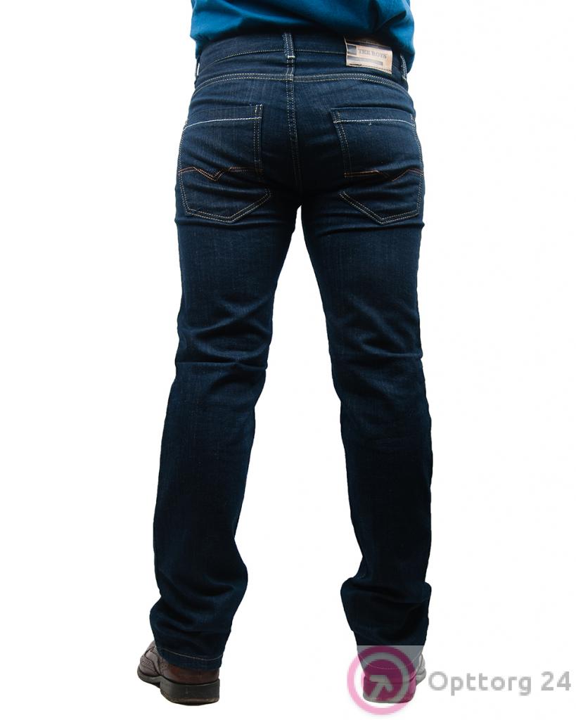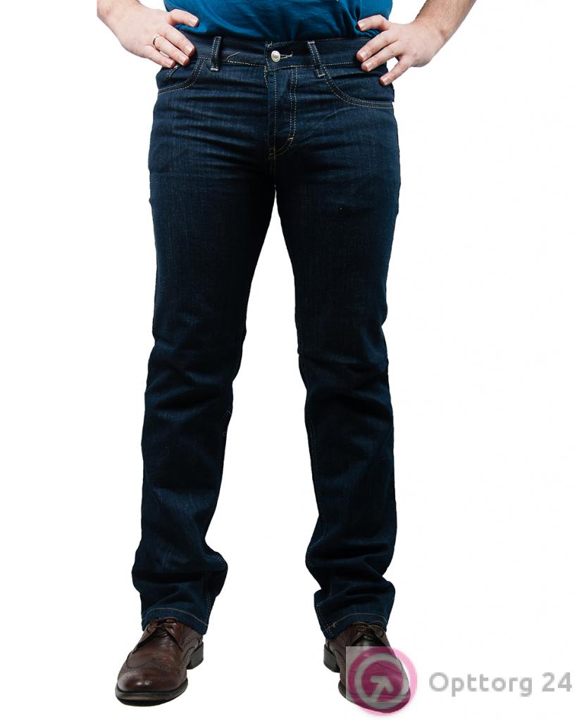 Джинсы мужские темно-синие с застежкой на пуговицы и строчкой оптом
