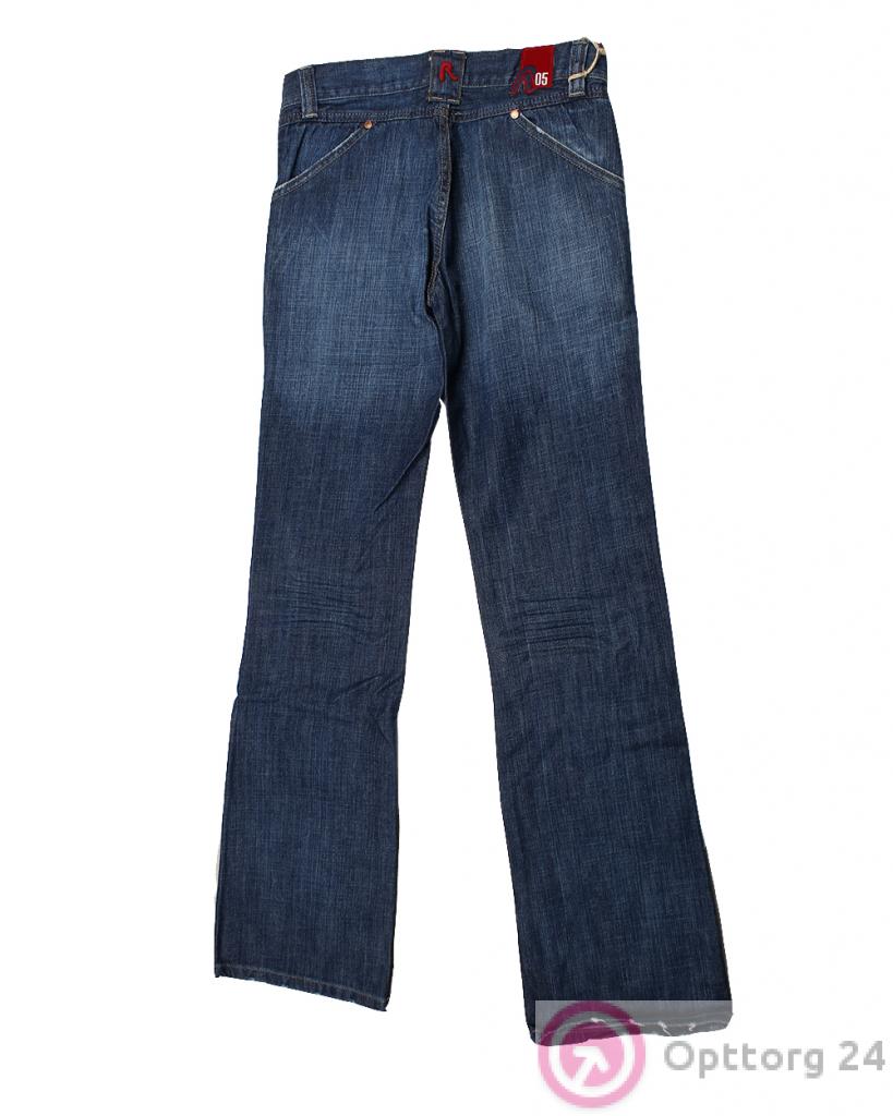 Темно-синие джинсы высветленные спереди. Изделие имеет оригинальные карманы наискосок.