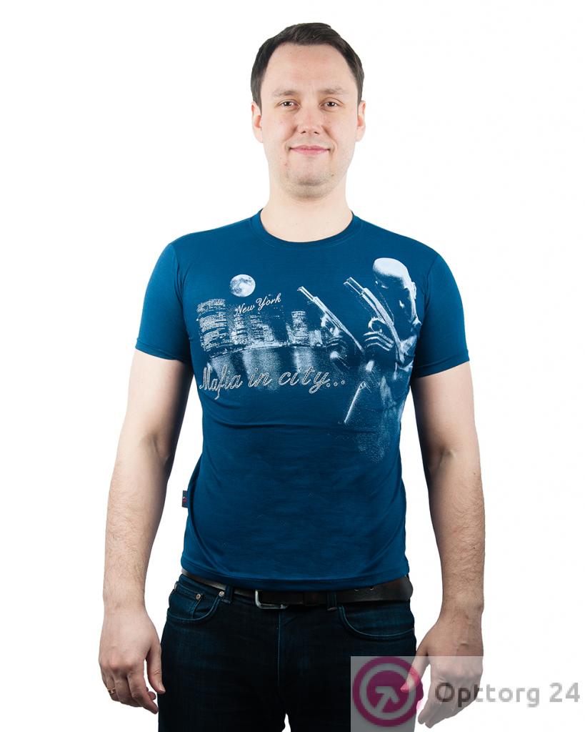 Футбол мужская синяя с принтом "Mafia in city" оптом