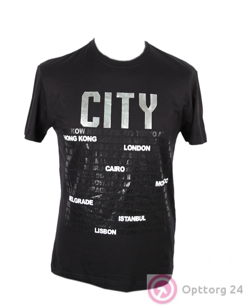 Мужская футболка черного цвета. Изделие украшено надписью спереди.