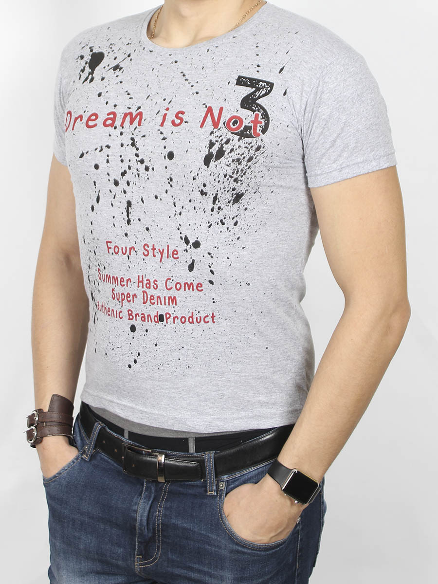 Футболка для мужчин, модель серого цвета с мелким принтом. оптом