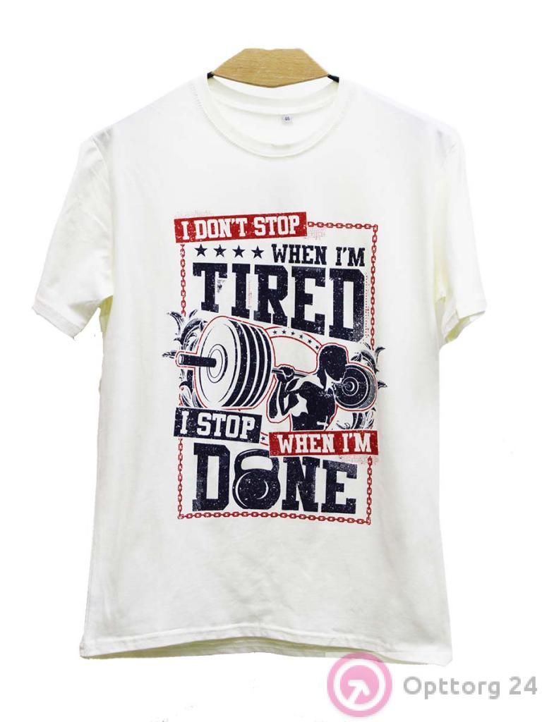 Футболка для мужчины белого цвета с изображением спорстмена оптом