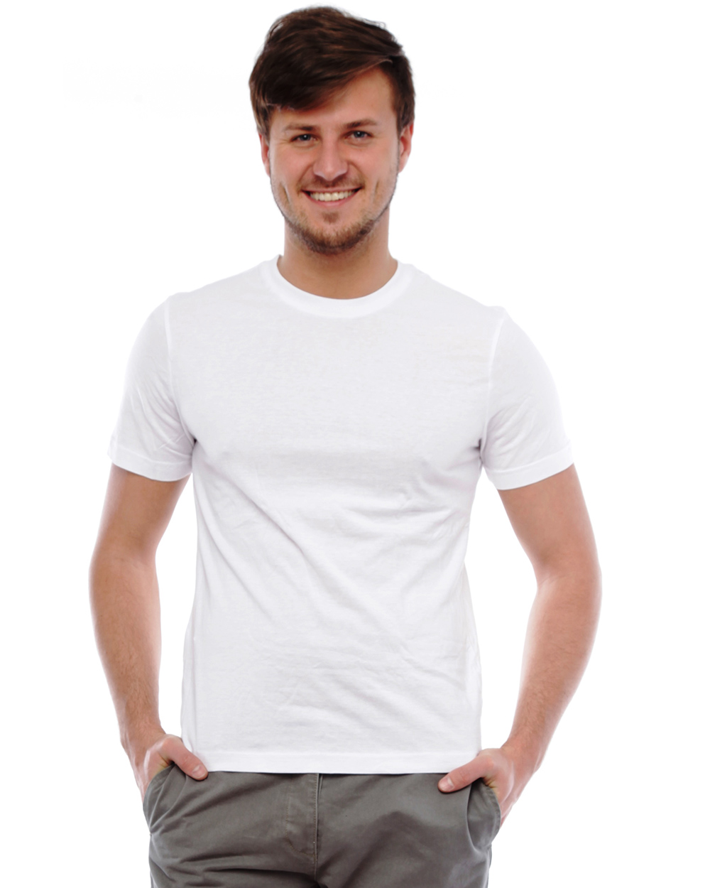 Мужская футболка коротким рукавом и круглым вырезом кругловины. Изготовлена из высококачественной хлопчатобумажной ткани булого цвета. Идеально подойдет для носки в сочитании с джинсами или в качестве нижнего белья.