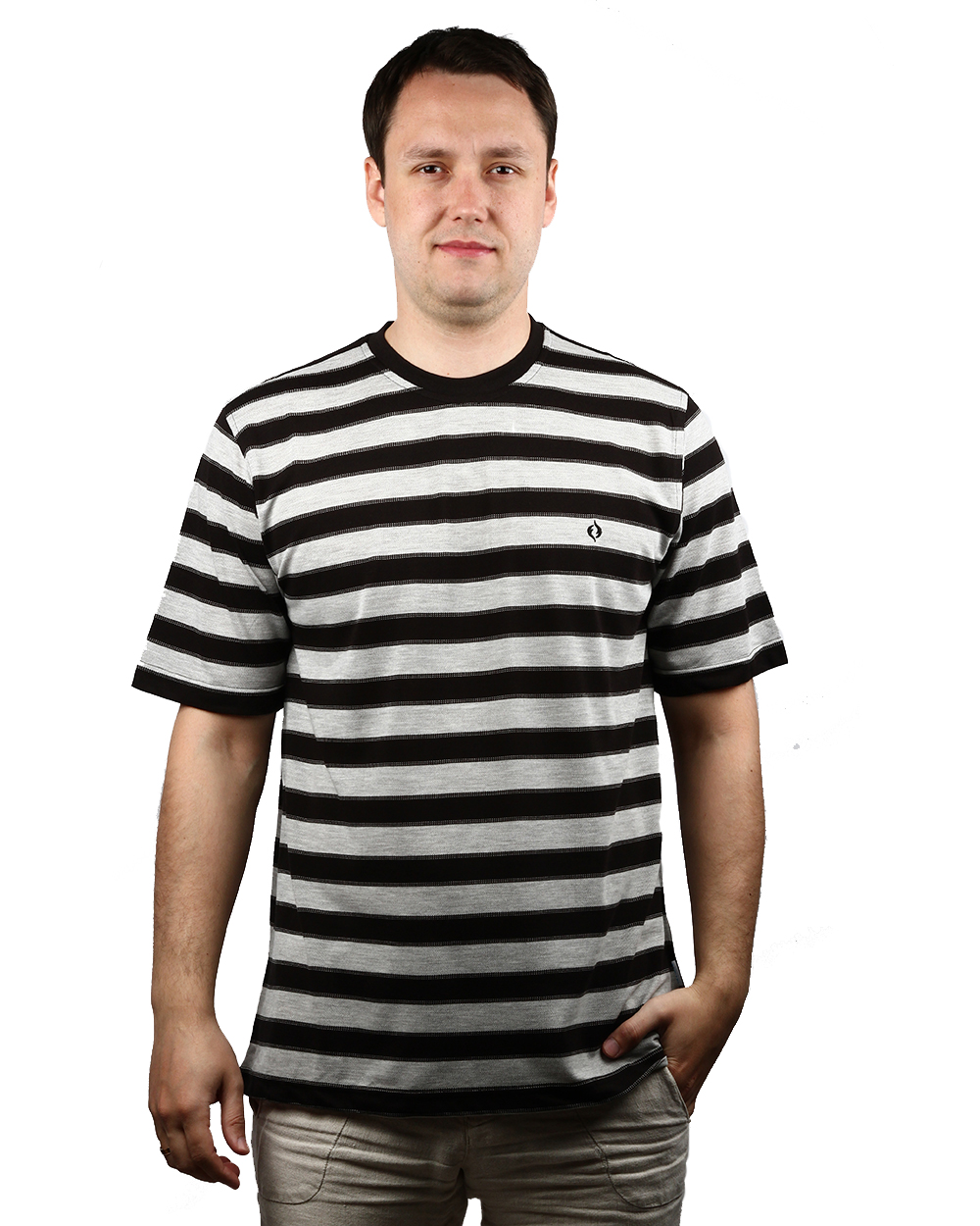 Футболка мужская белого цвета с кофейной полоской оптом