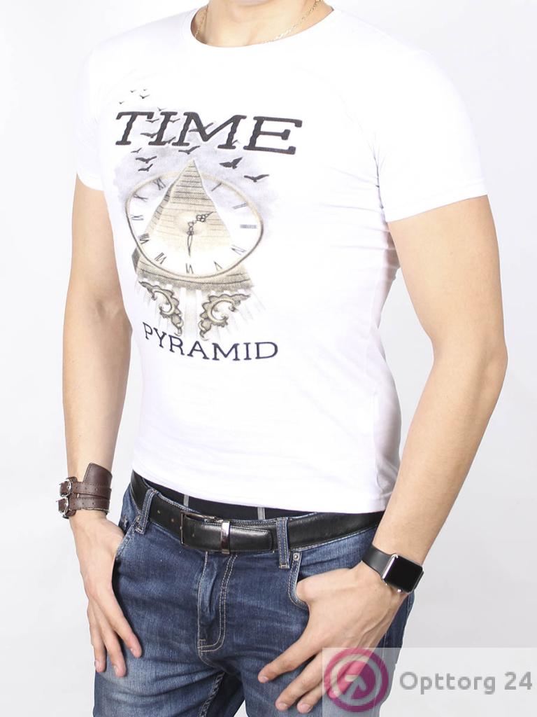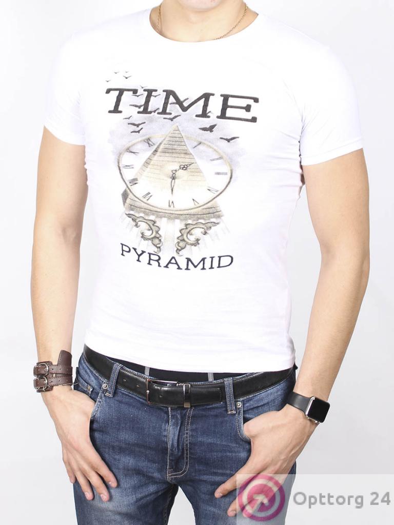 Футболка мужская белого цвета с принтом в виде пирамиды. оптом