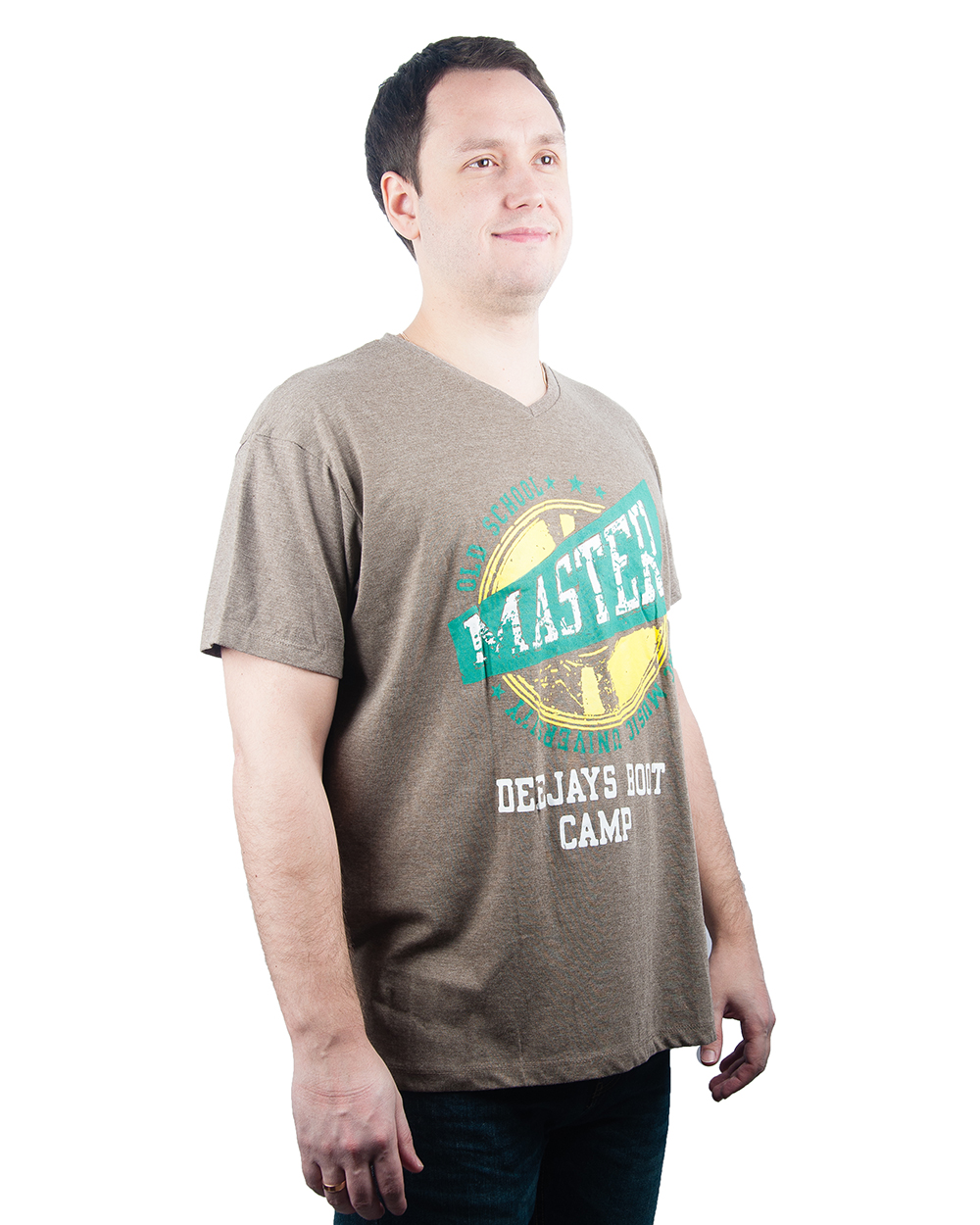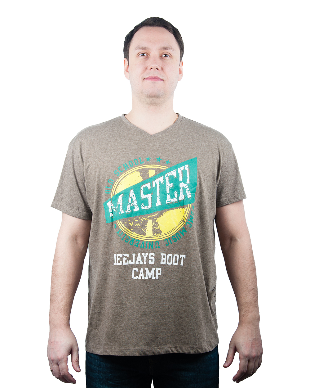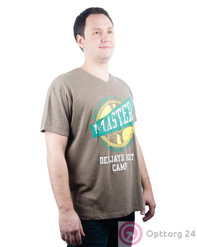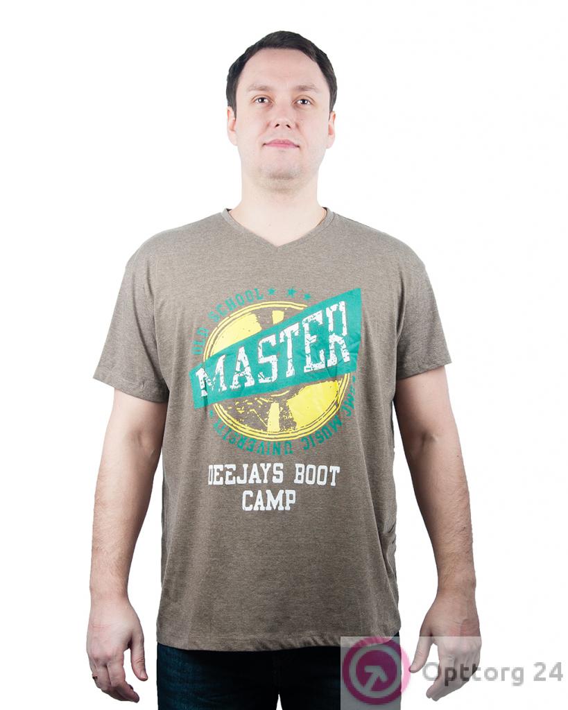 Футболка мужская бежевая с принтом и надписью "Master" оптом