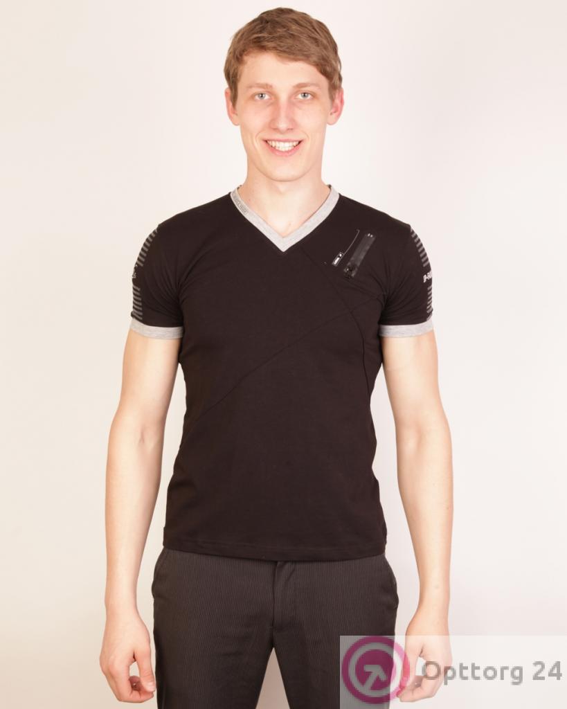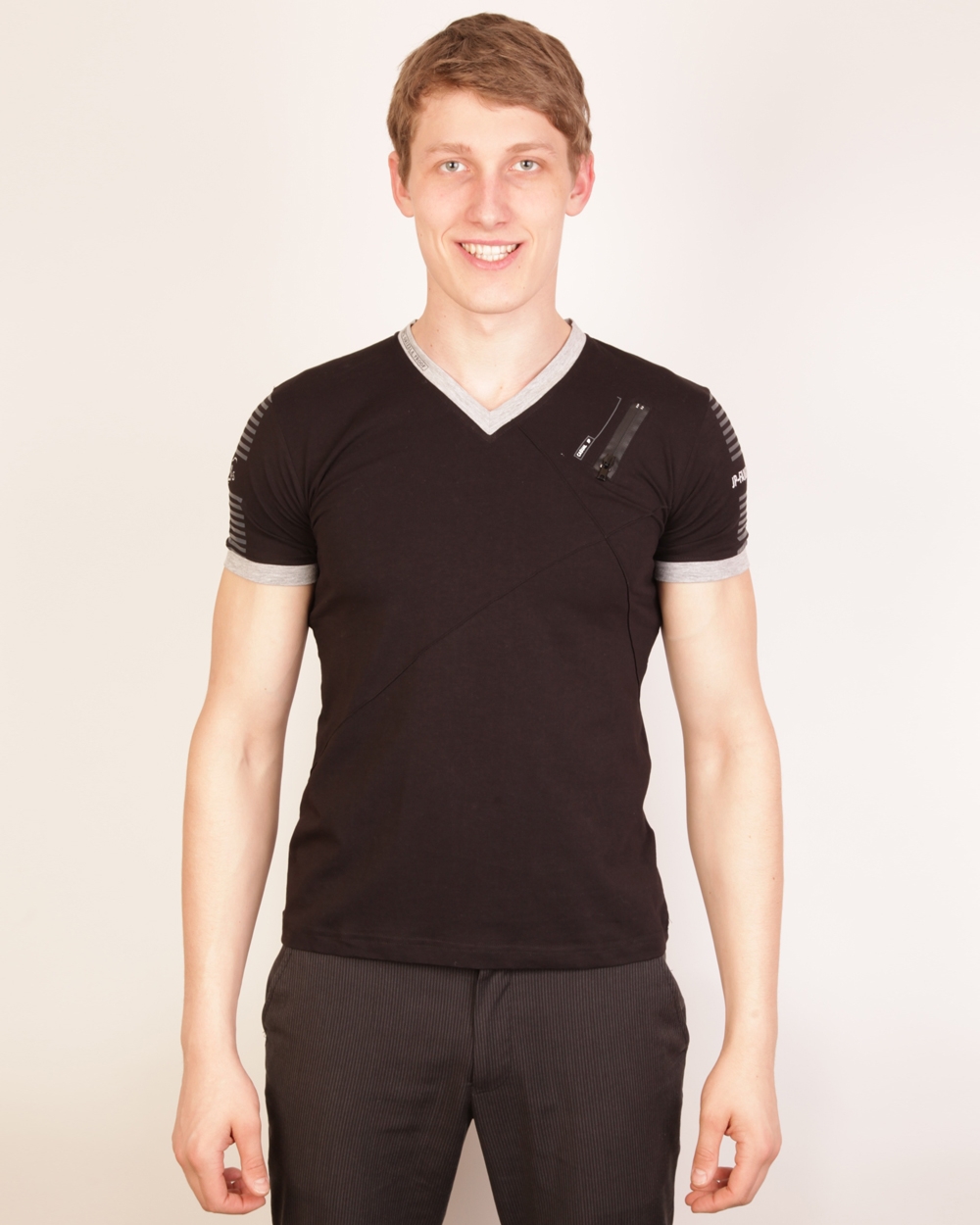 Мужская футболка с необычной черной отделкой станет отличным дополнением к основному гардеробу мужчины. Ее можно комбинировать с различными джинсами или шортами. Модель выполнена из натурального хлопка с добавлением эластана.