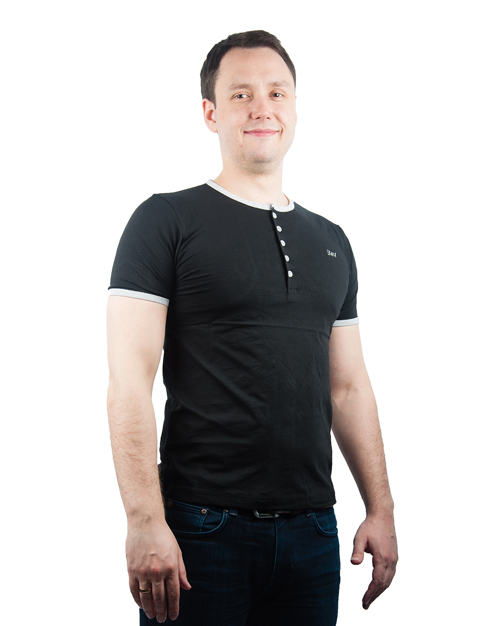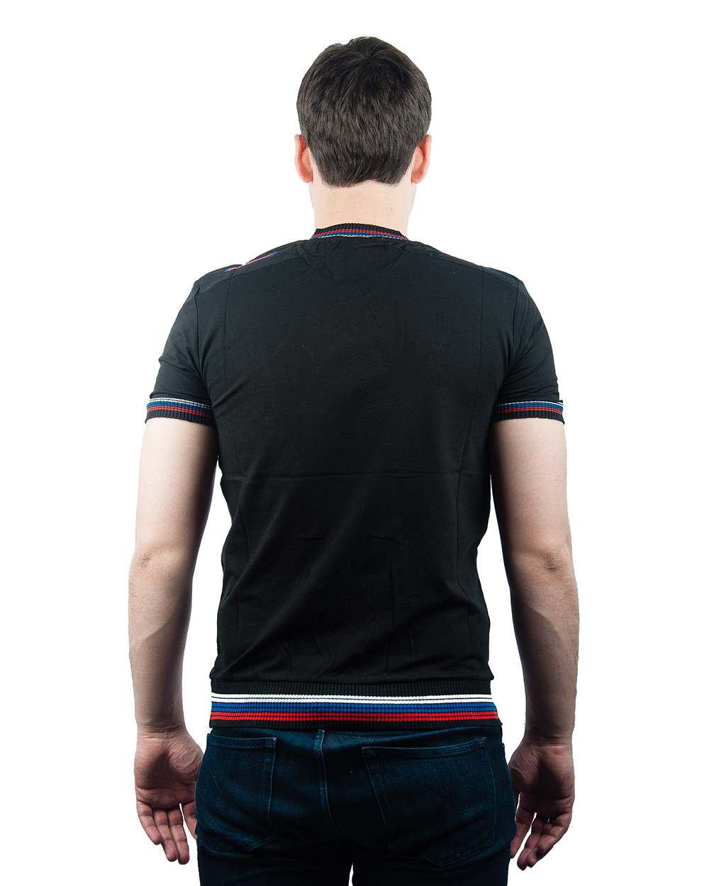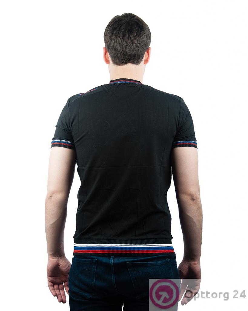 Футболка мужская черная с V-образным вырезом и резинками оптом