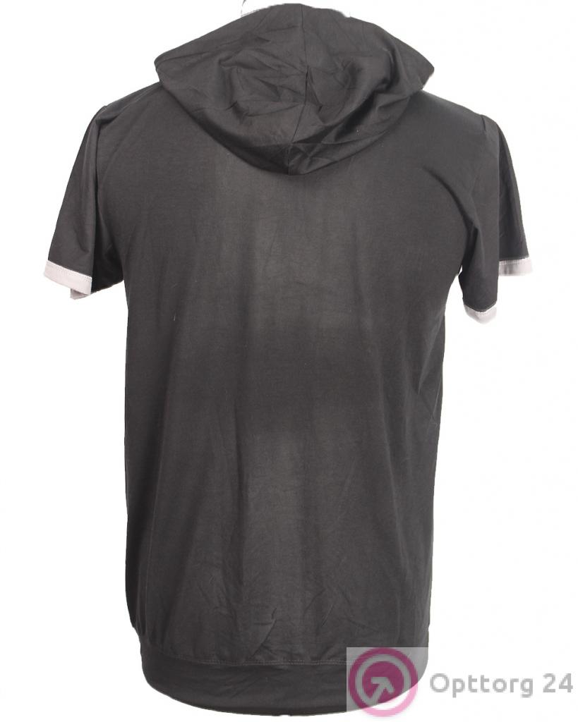 Футболка мужская черного цвета с капюшоном оптом