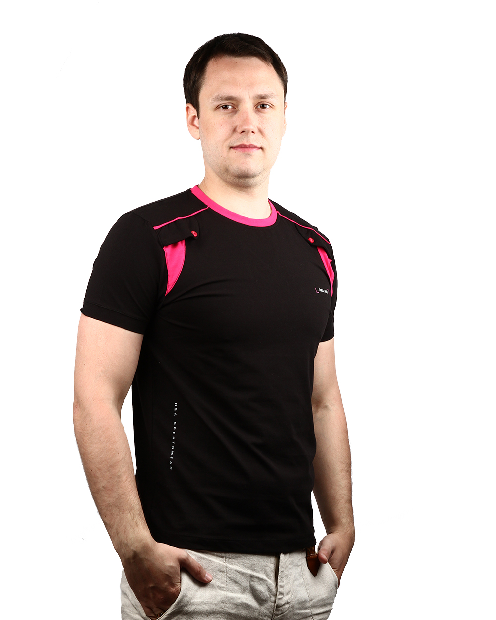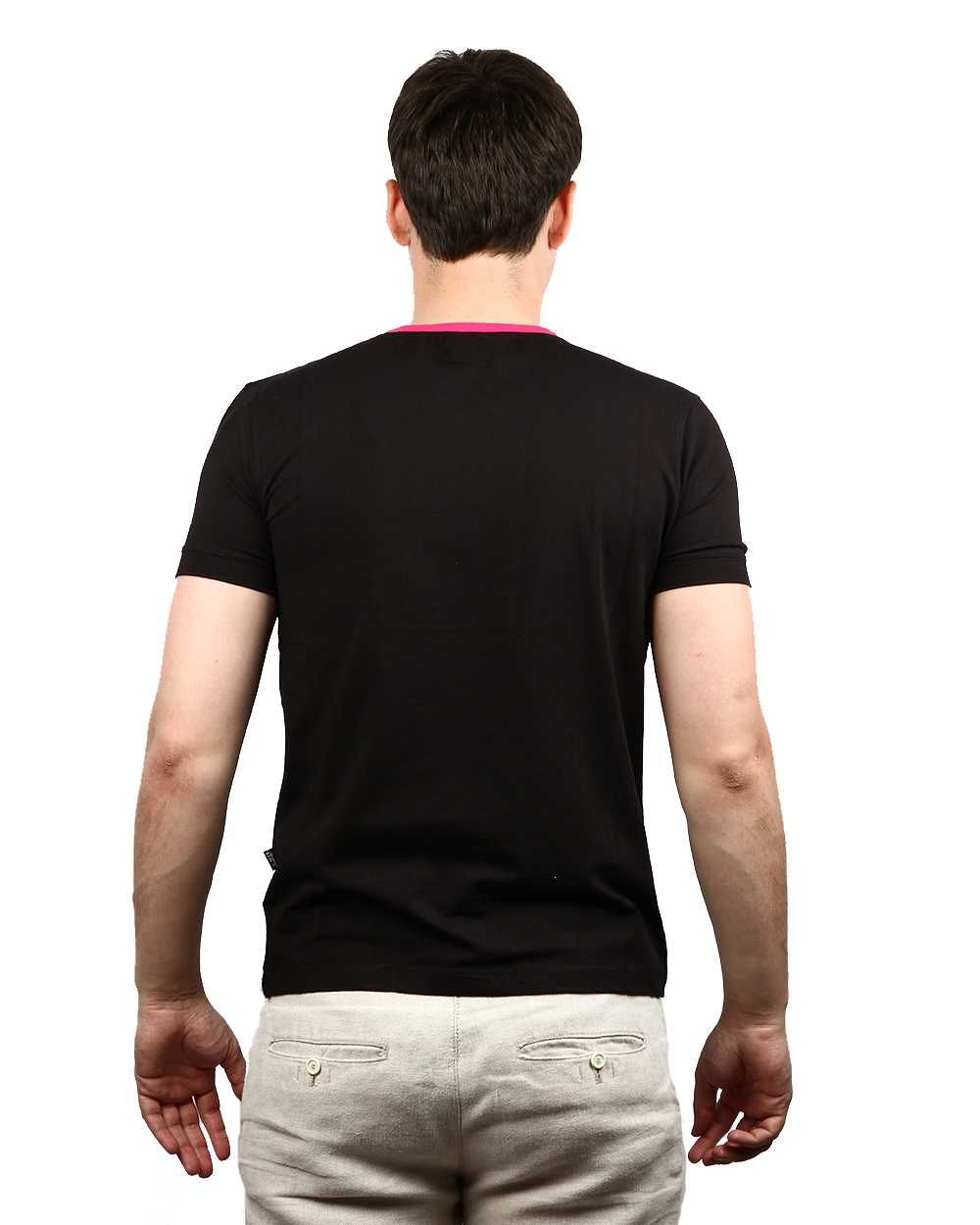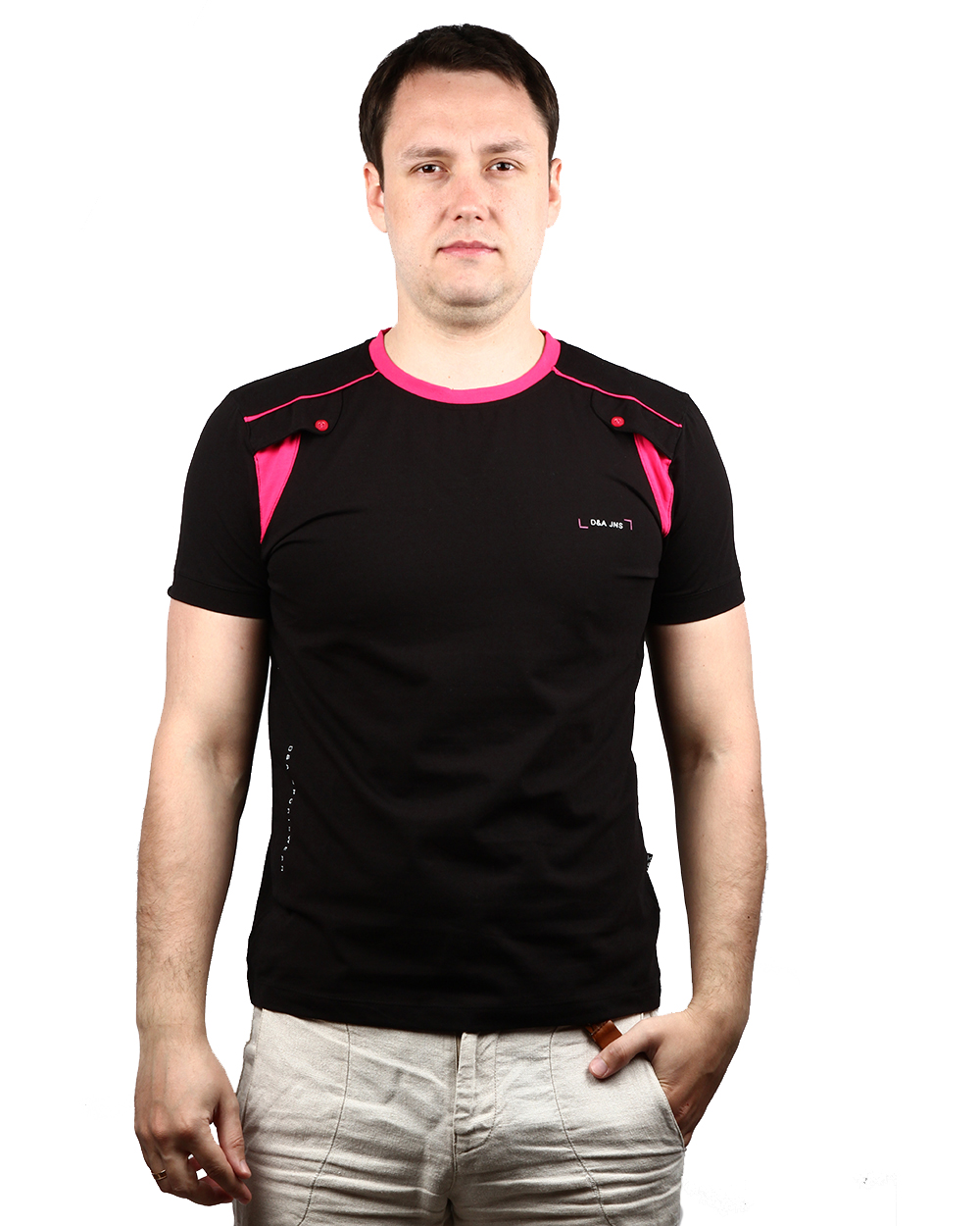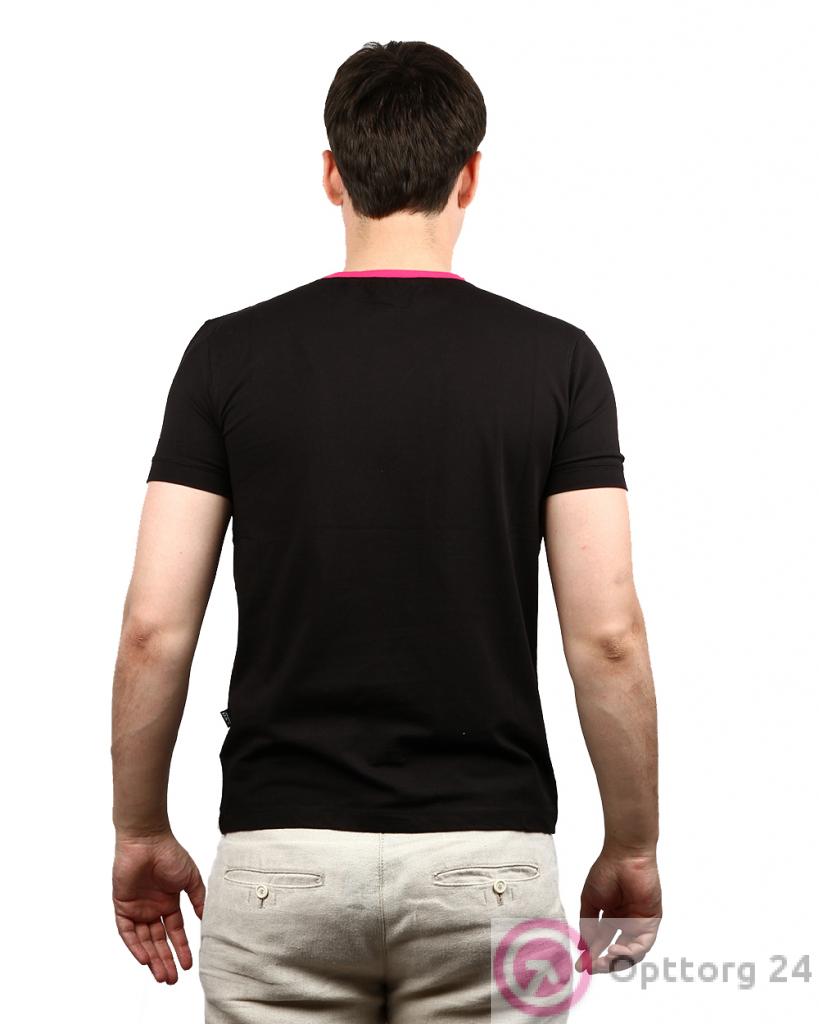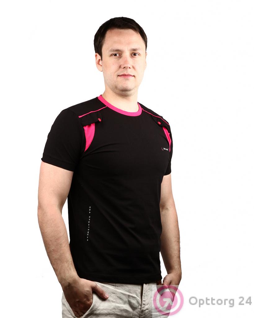 Футболка мужская черного цвета с розовыми вставками оптом