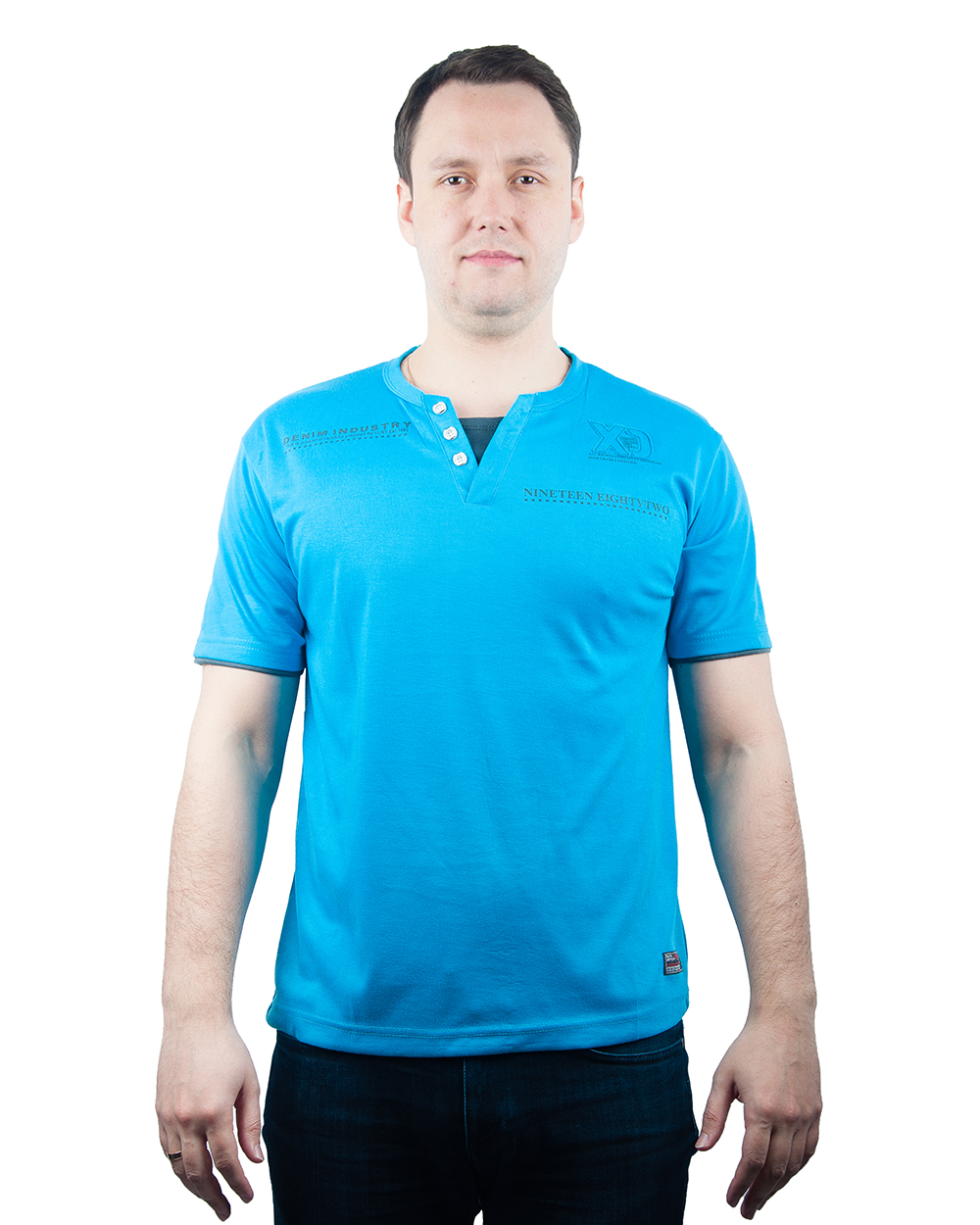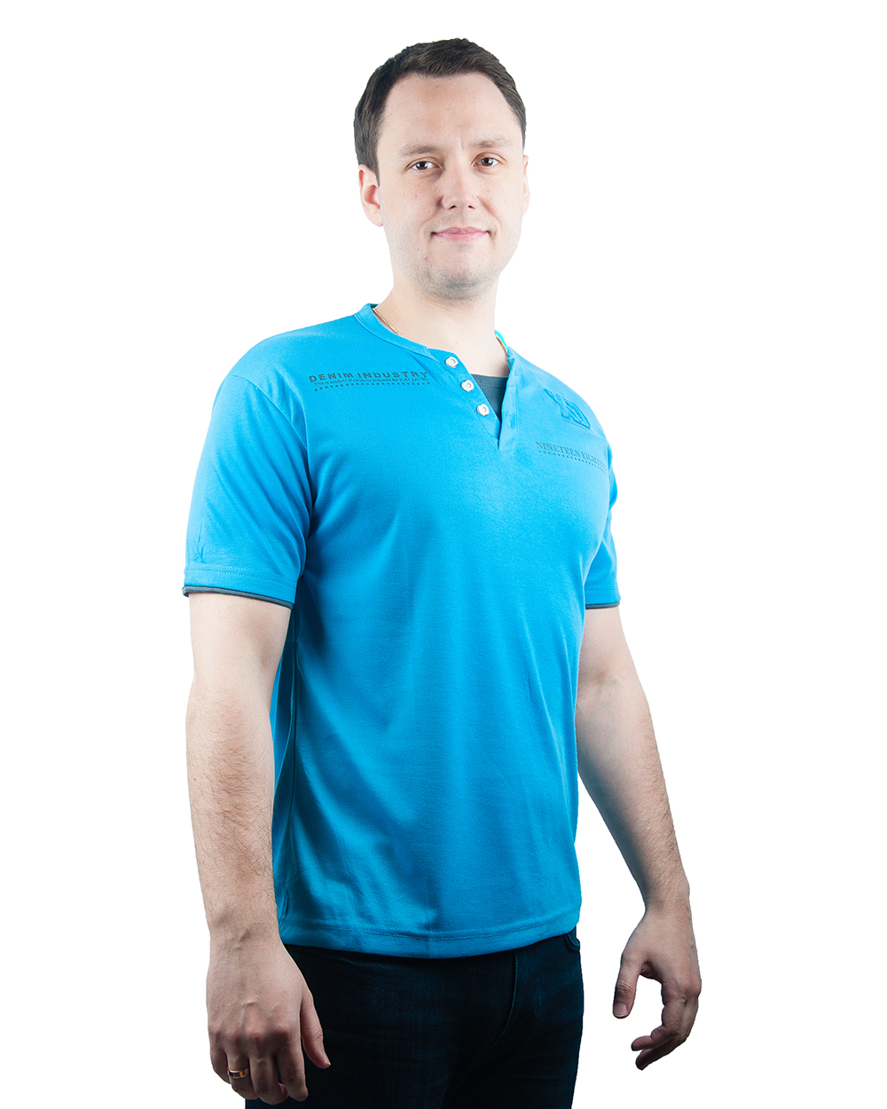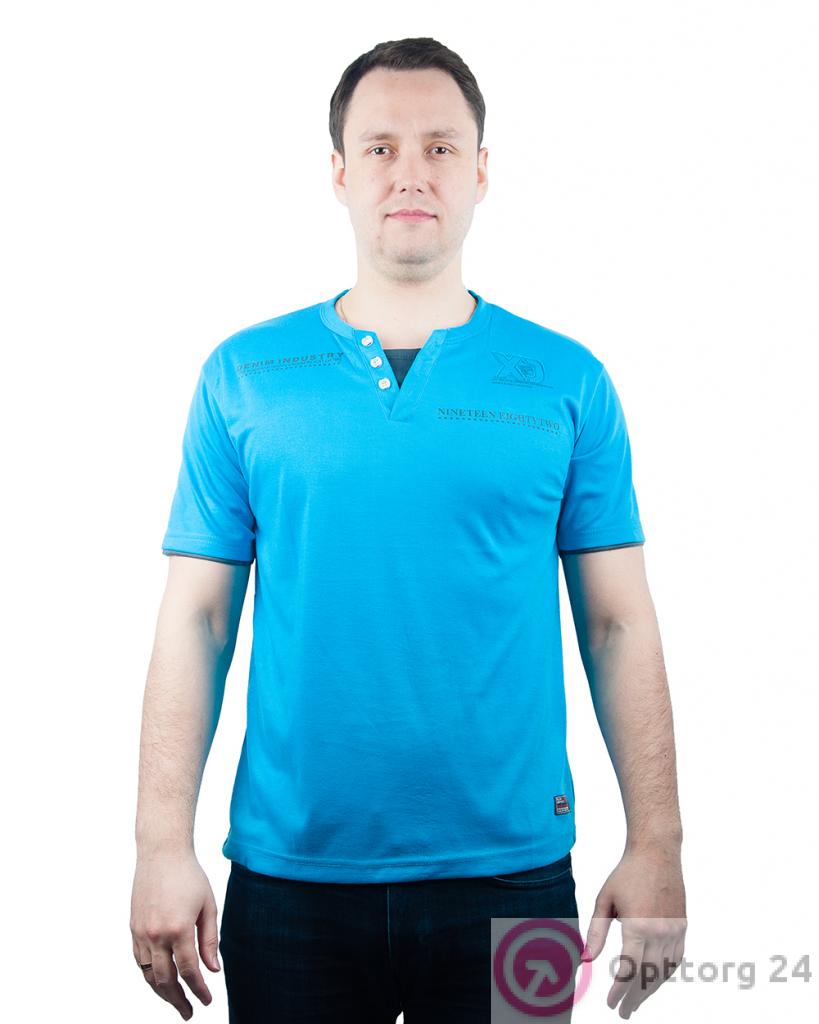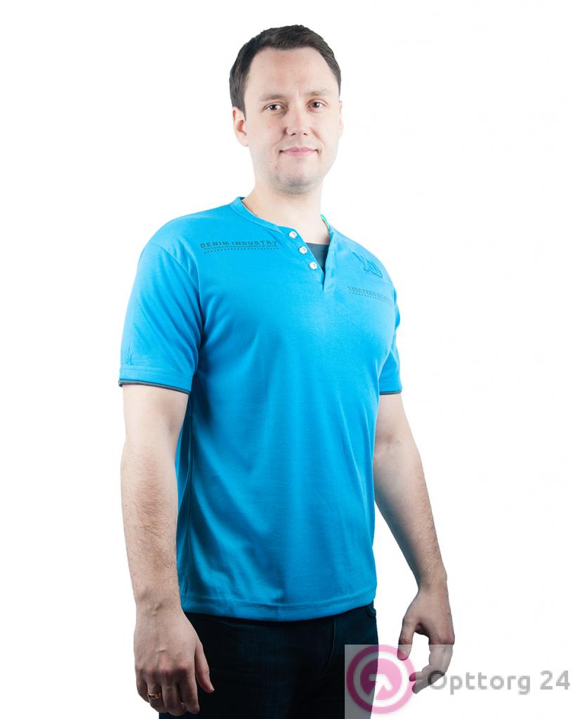 Футболка мужская голубая с пуговицами "Denim industry" оптом