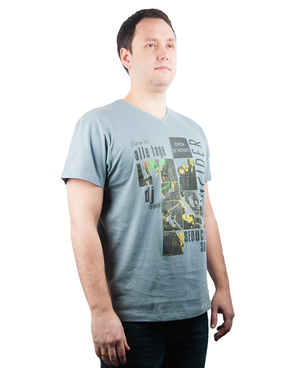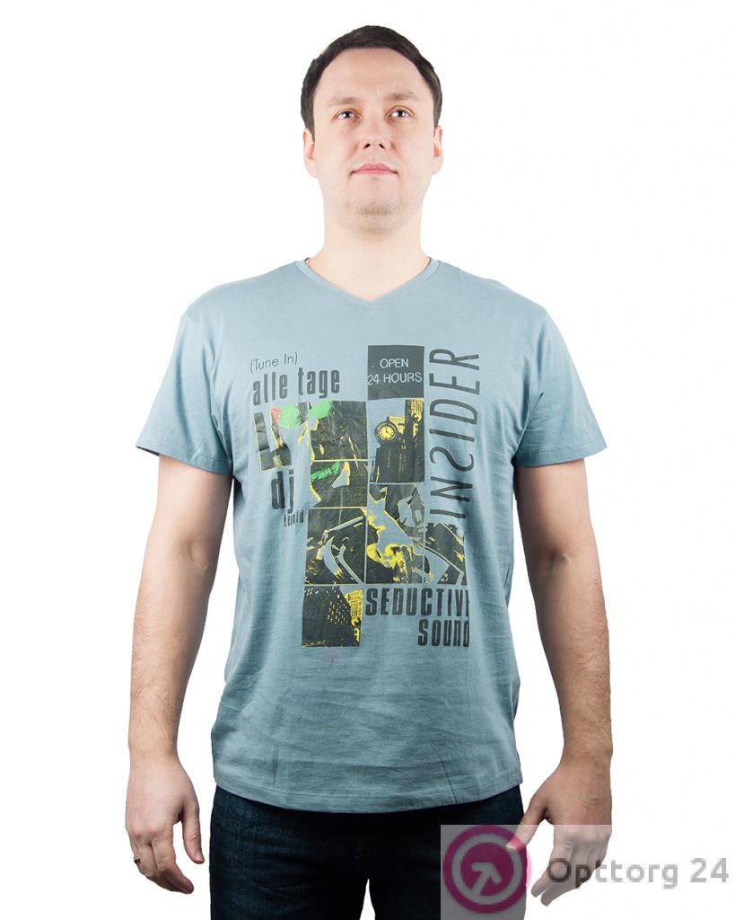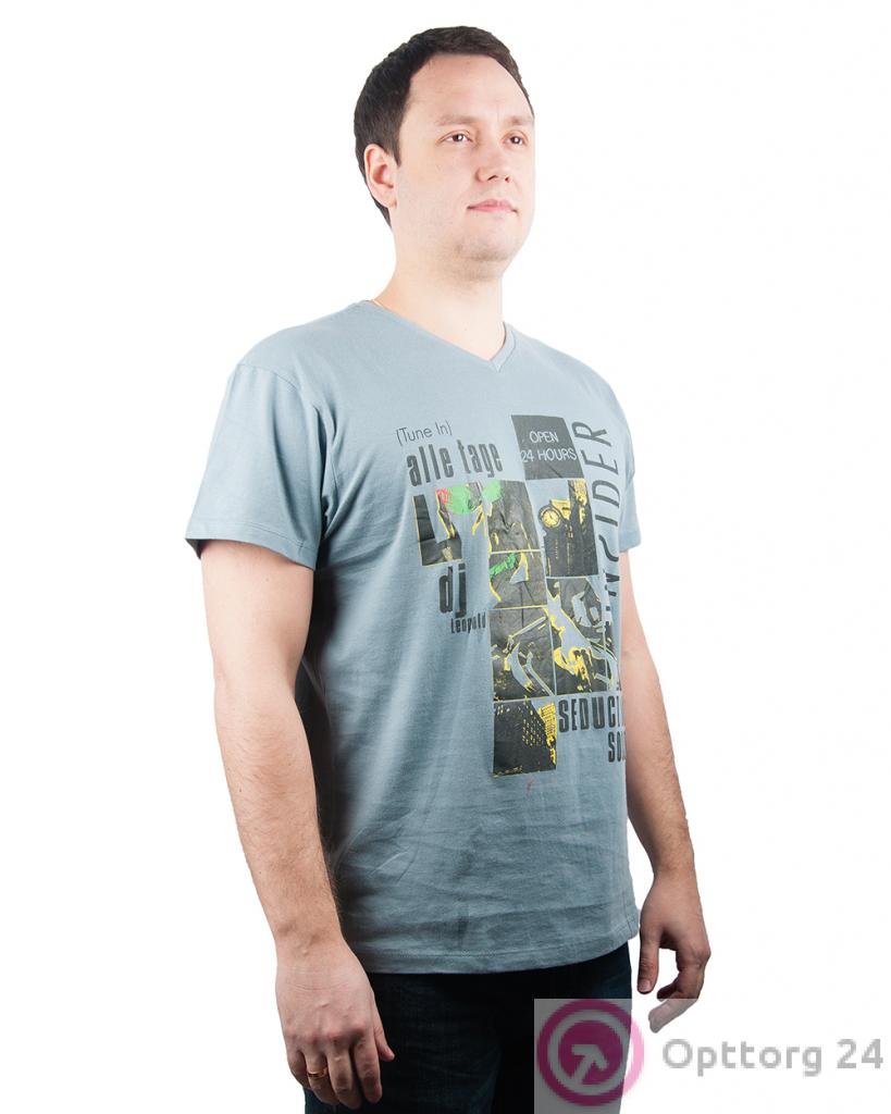 Футболка мужская голубого цвета с фотографиями оптом