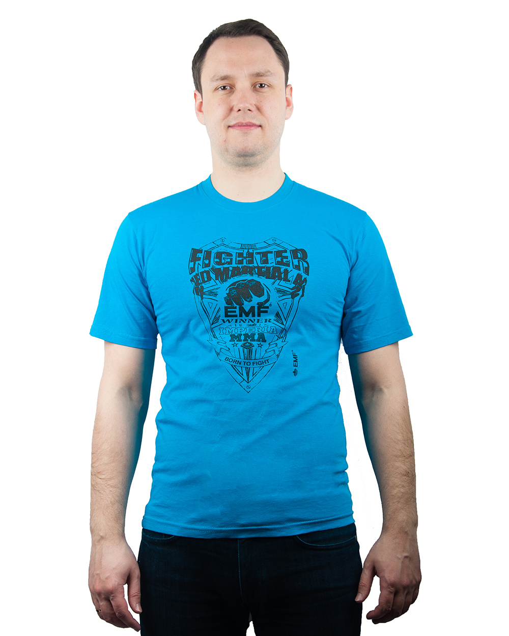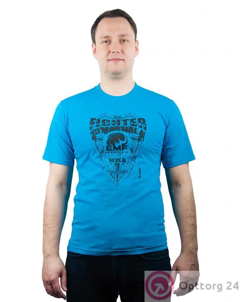 Мужская футболка голубого цвета с ярким принтом прекрасно подойдет для занятий спортом или ежедневной носки. Легкая хлопковая ткань приятна телу и позволяет ему дышать.