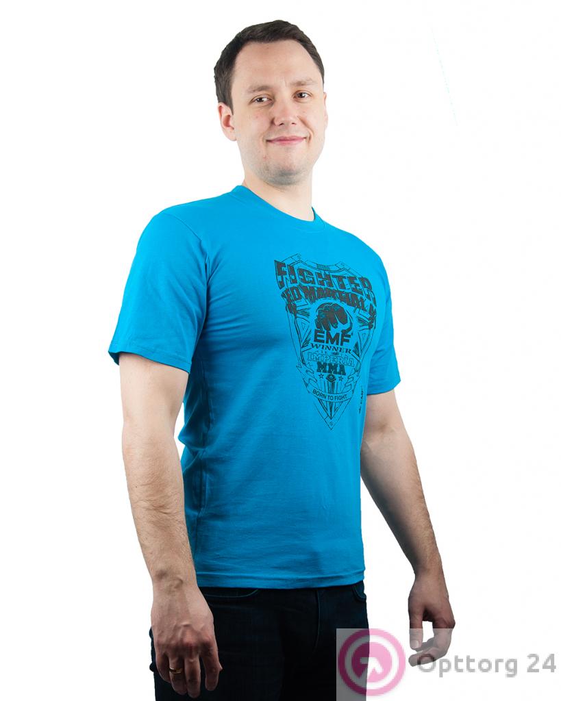 Футболка мужская голубого цвета с принтом оптом