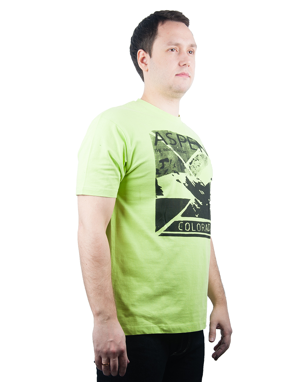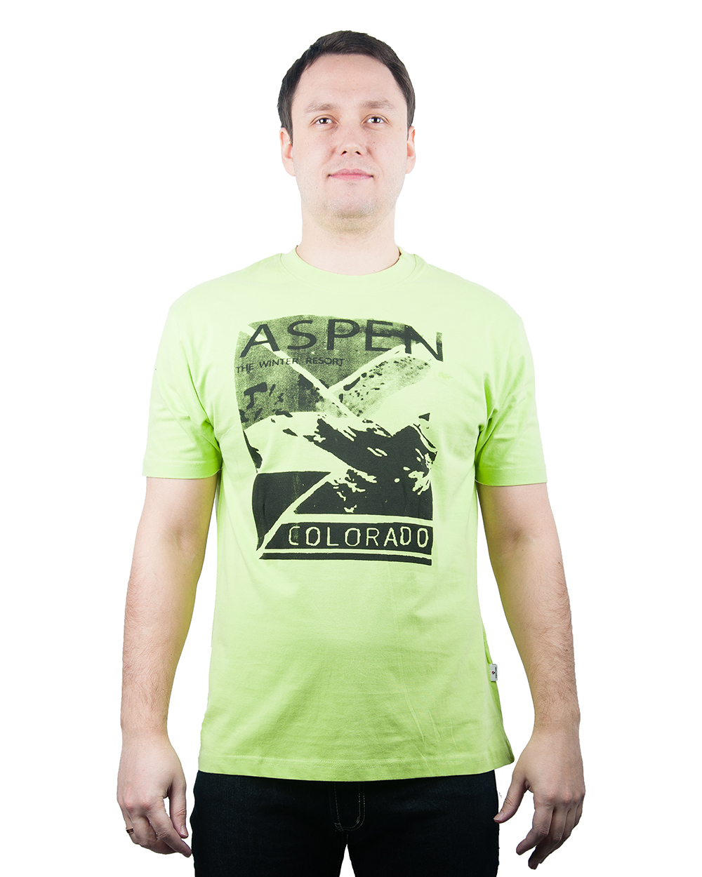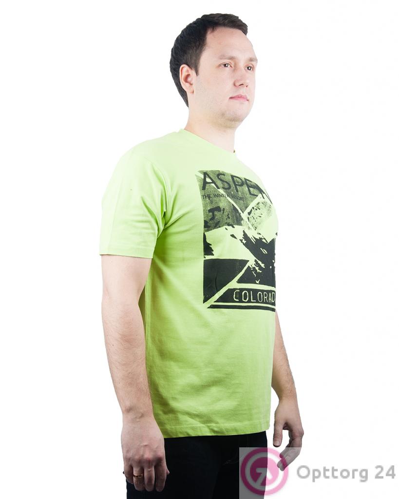 Футболка мужская нежно -зеленого цвета с абстрактным принтом и надписью оптом