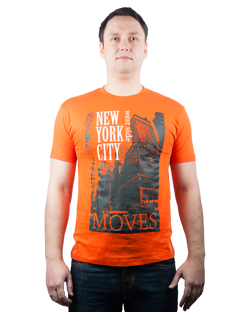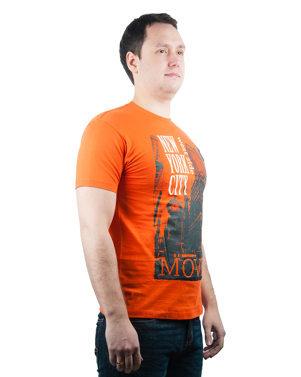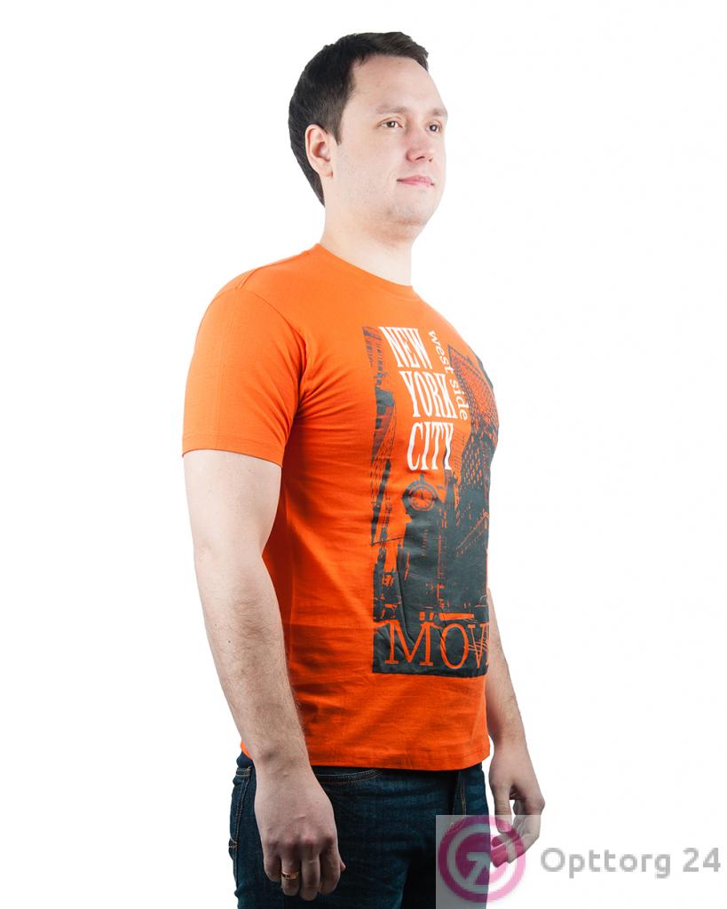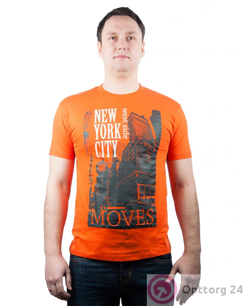 Футболка мужская оранжевая с городским принтом оптом