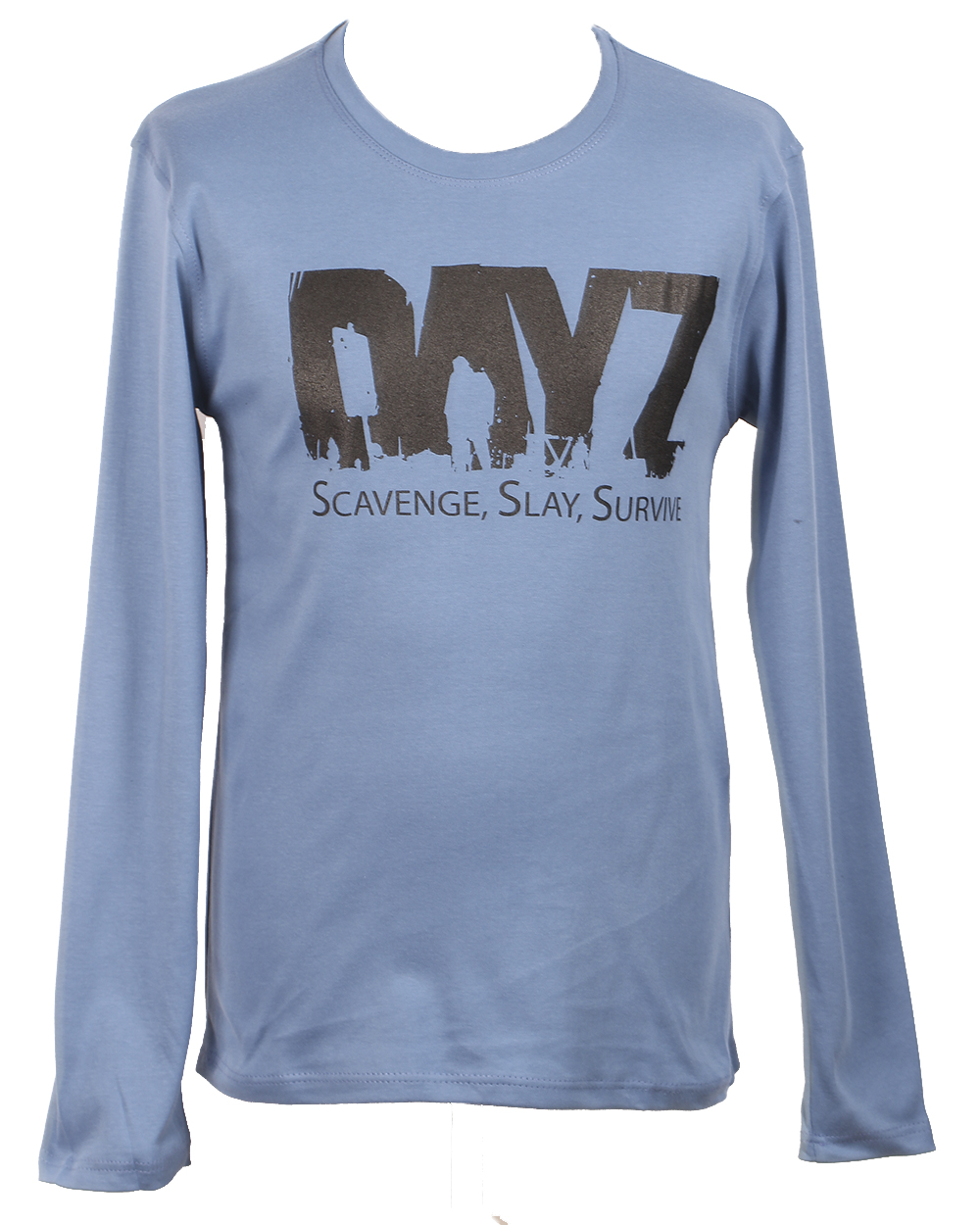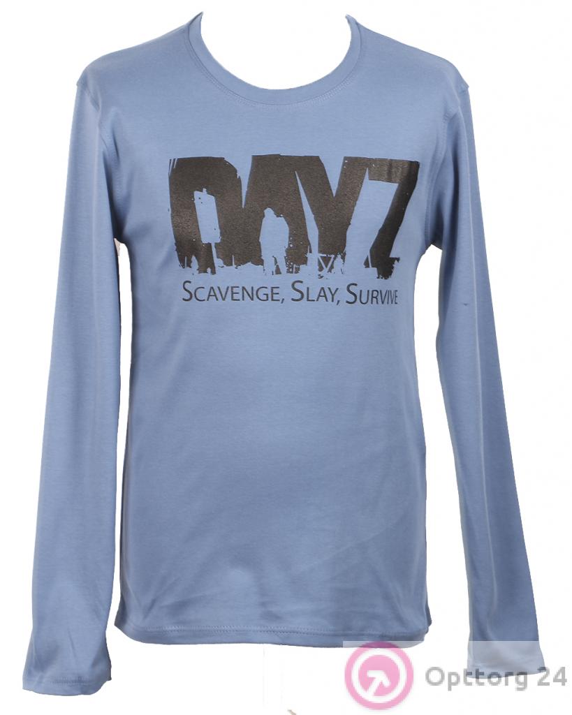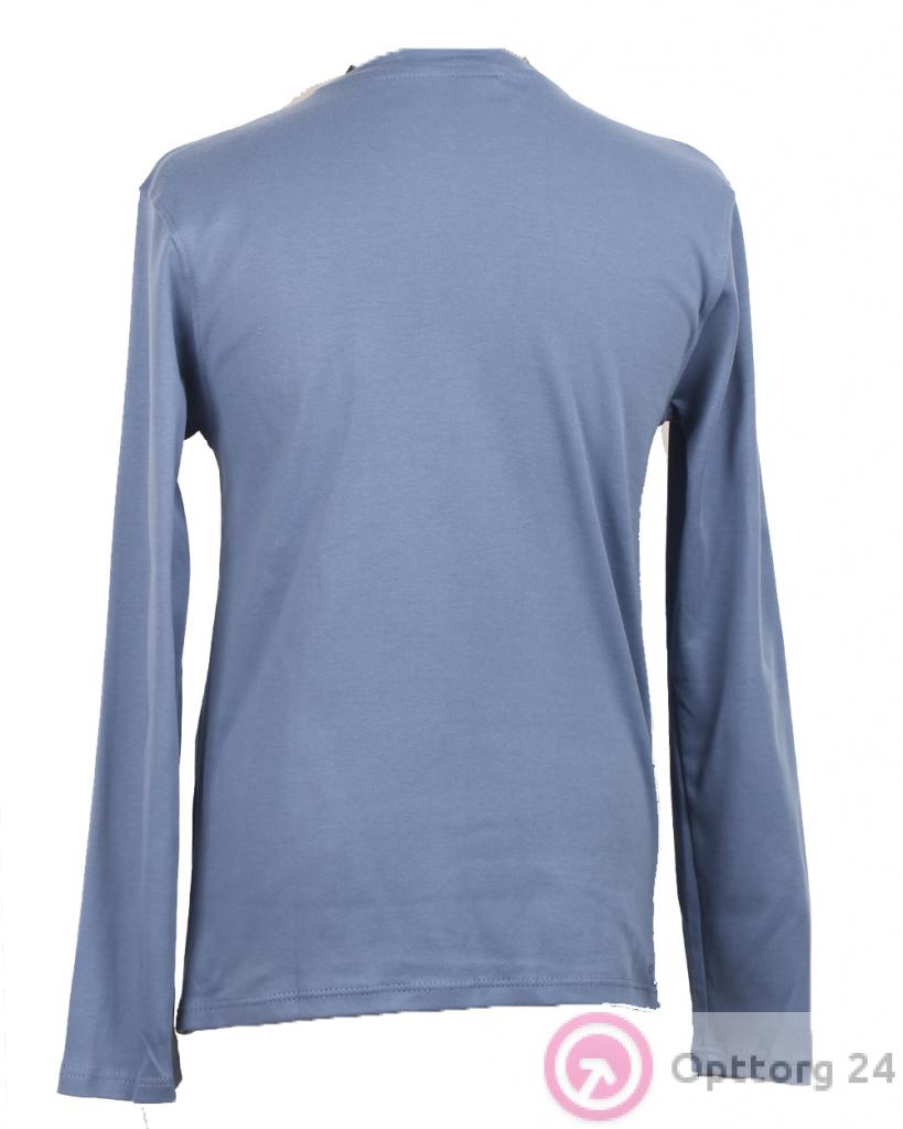 Футболка мужская с длинным рукавом синего цвета с черным принтом. оптом