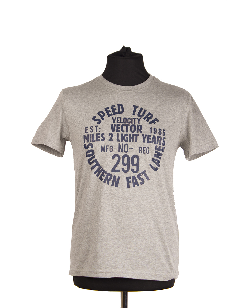 Отличная футболка цвета серый меланж с надписью. Практичный цвет и качественный пошив делают модель очень востребованной в весенне-летний период.