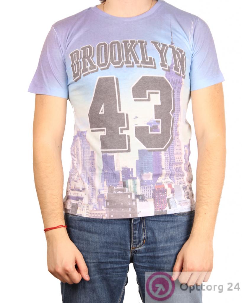 Футболка мужская с разводами и принтом "Бруклин" оптом