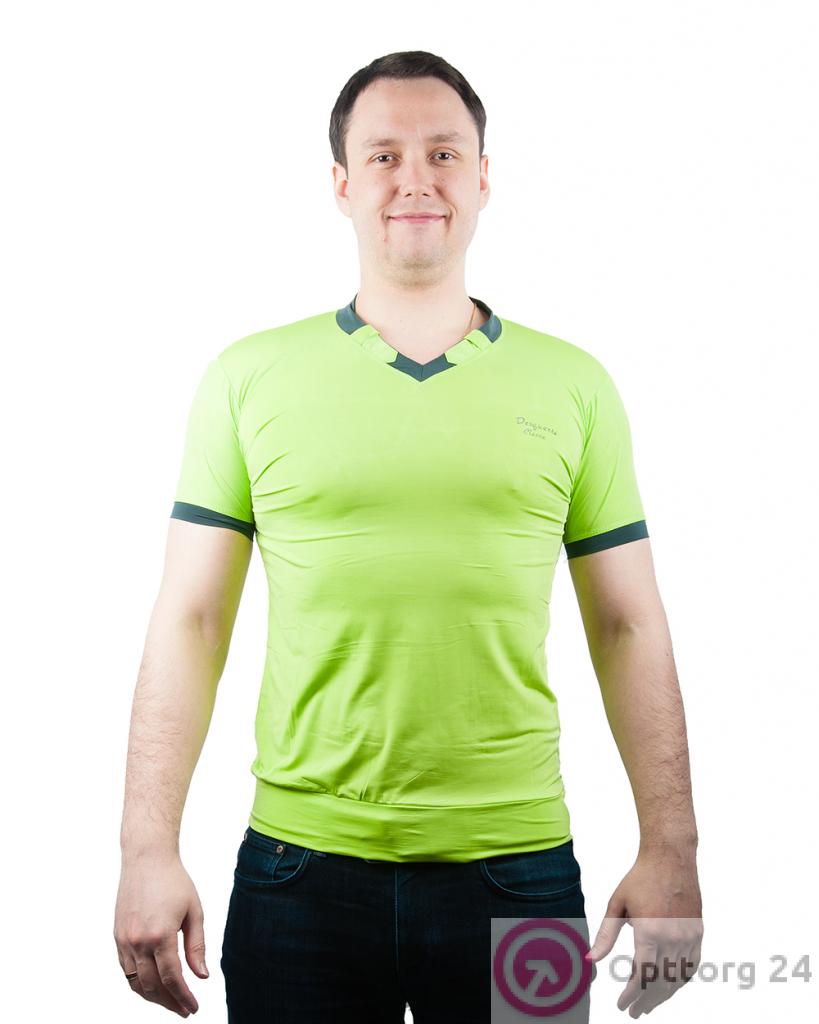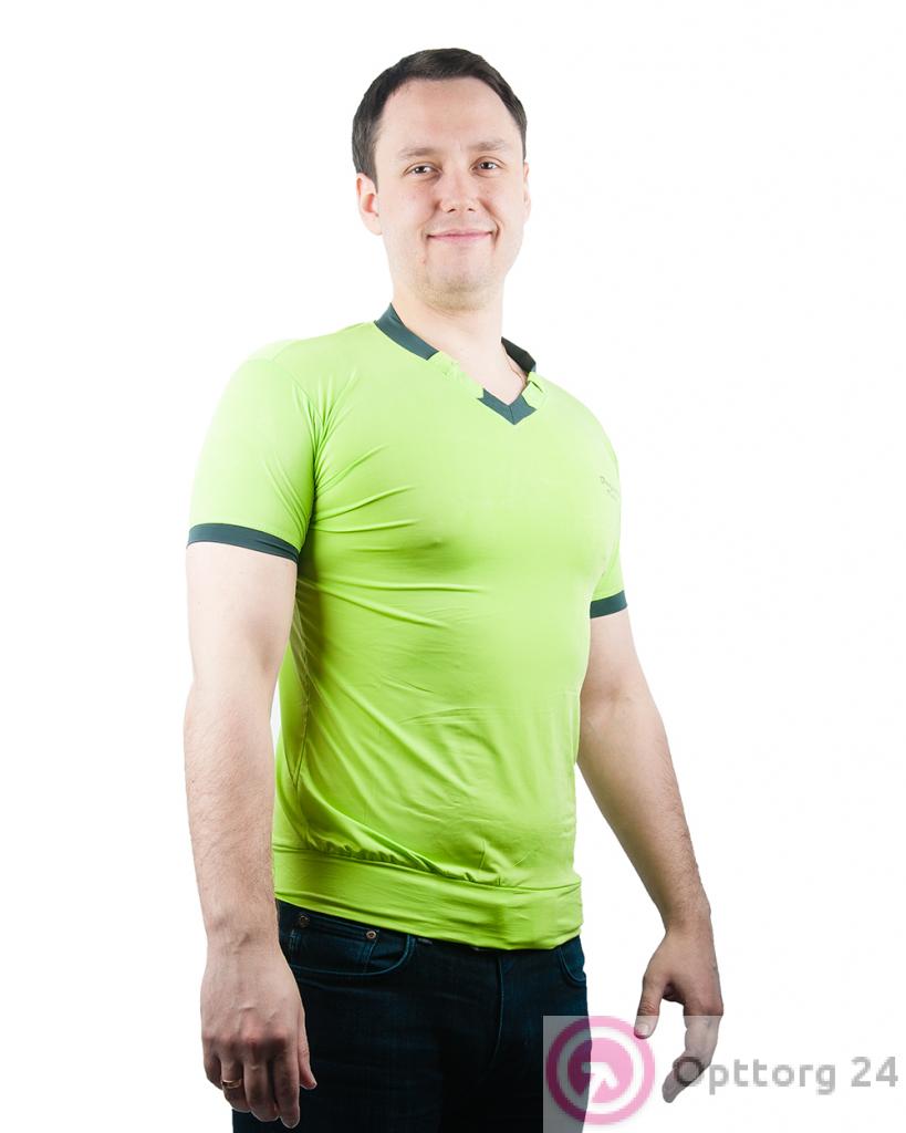 Футболка мужская салатовая на резинке с темно-зеленой отделкой оптом