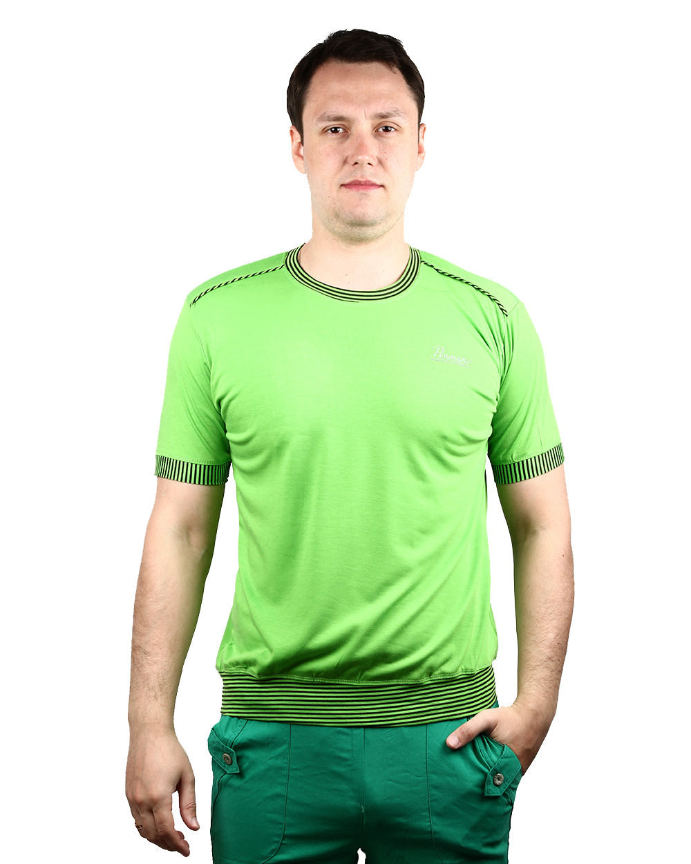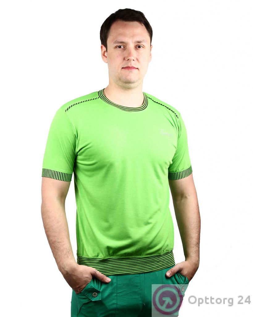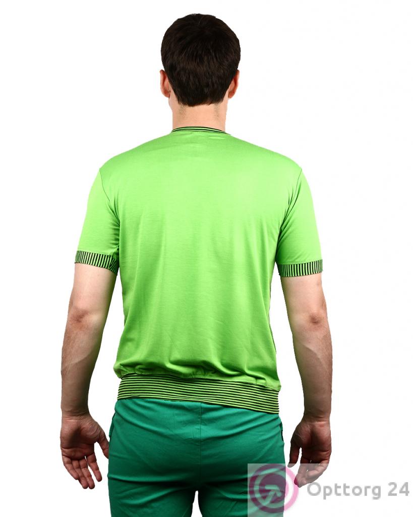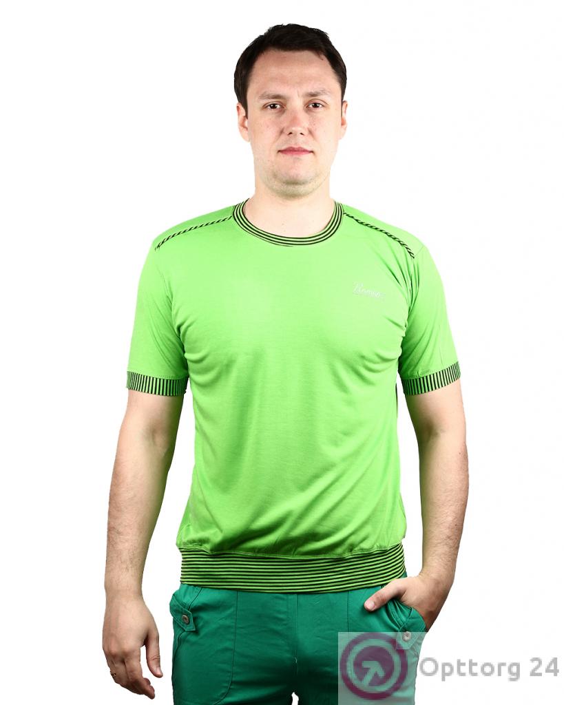 Футболка мужская салатового цвета с полосками оптом