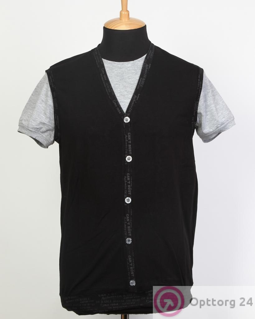 Эта необычная мужская футболка с коротким рукавом выглядит необычно засчет эффекта "накинутого жилета". Вы можете комбинировать ее с джинсами и ходить в ней даже на работу.