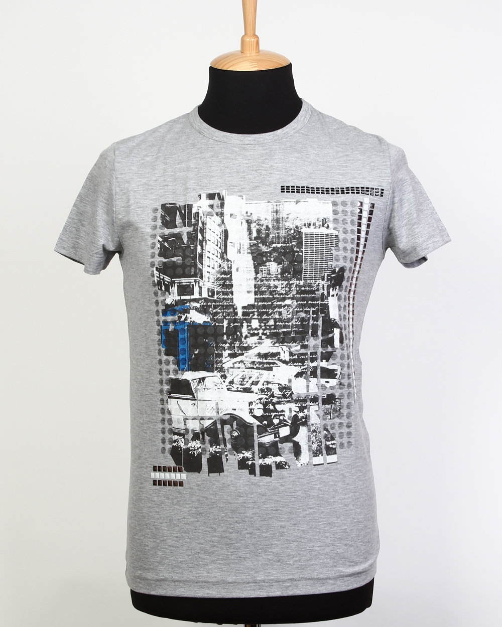 Мужская серая футболка с ярким принтом прекрасно подходит тем, кто хочет выглядеть красиво и стильно, но при этом ощущать себя комфортно. Модель с короткими рукавами, свободного покроя.