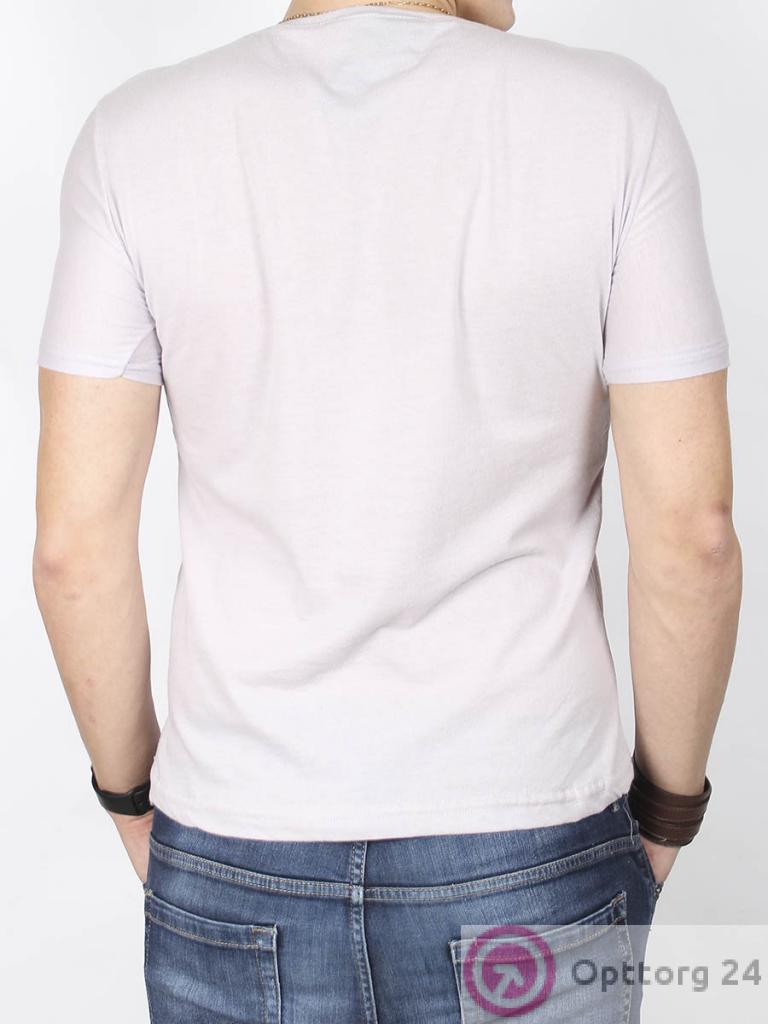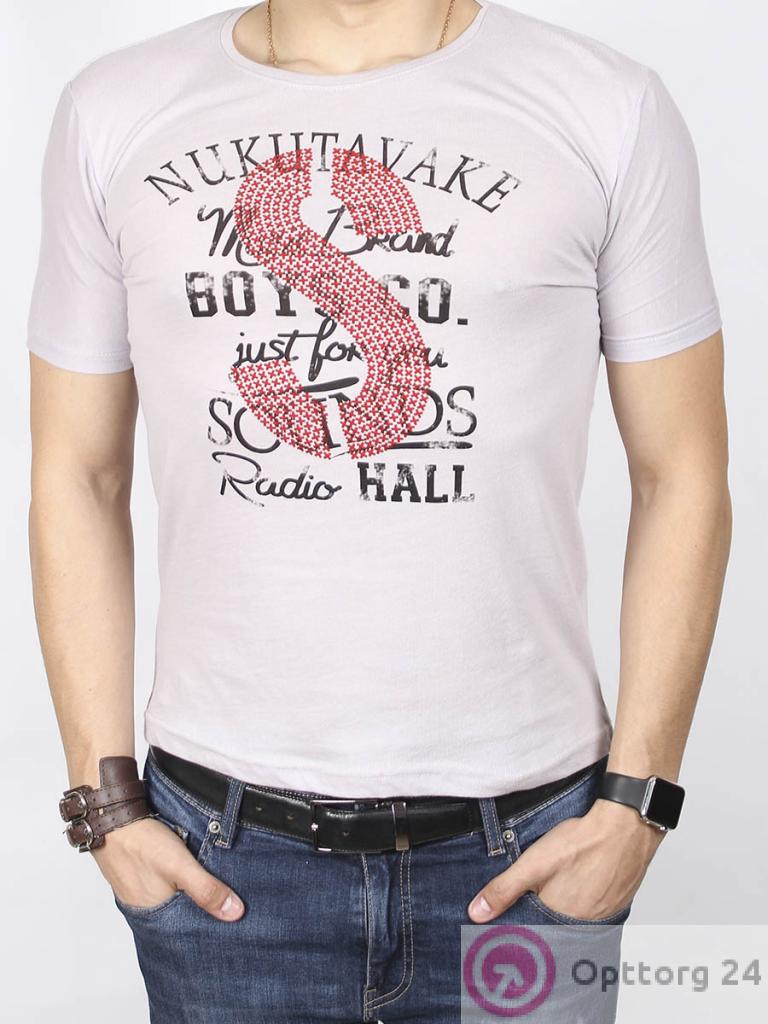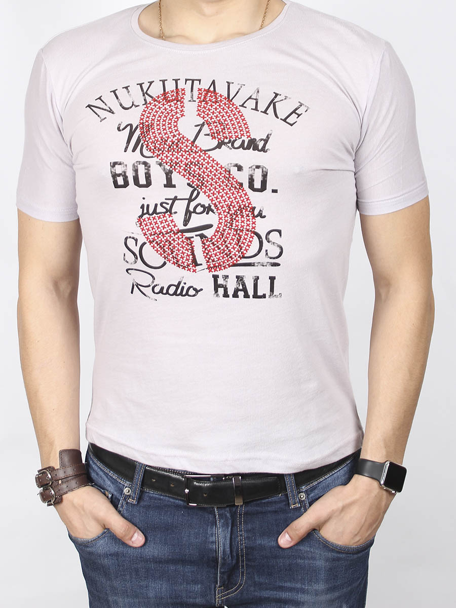 Футболка серого цвета для мужчин модель с принтом на передней части изделия.